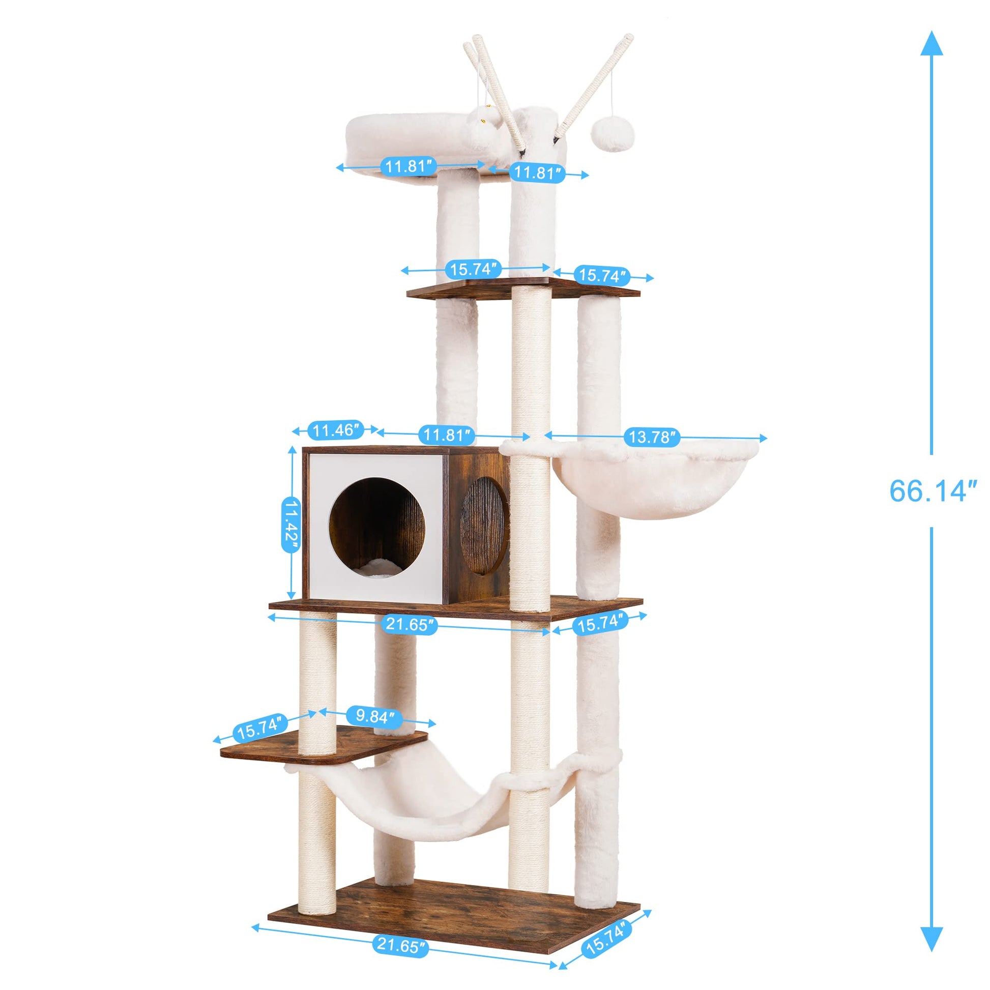 Wooden Cat Tree, 66.1“ Cat Furniture with Scratching Posts, Modern Cat Tower