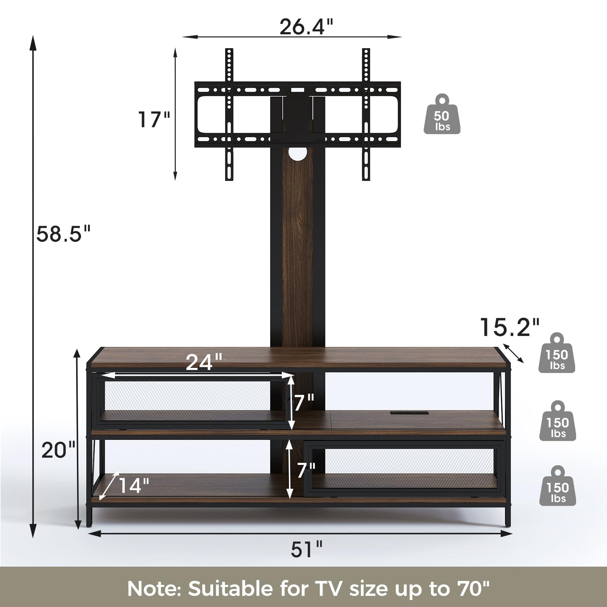 - This furniture seamlessly combines a floor TV stand with a swiveling TV mount. The TV mount allows horizontal movement to accommodate 32 to 70-inch TVs. The stand enables a maximum 45-degree swivel to enhance the viewing experience from any seating position.