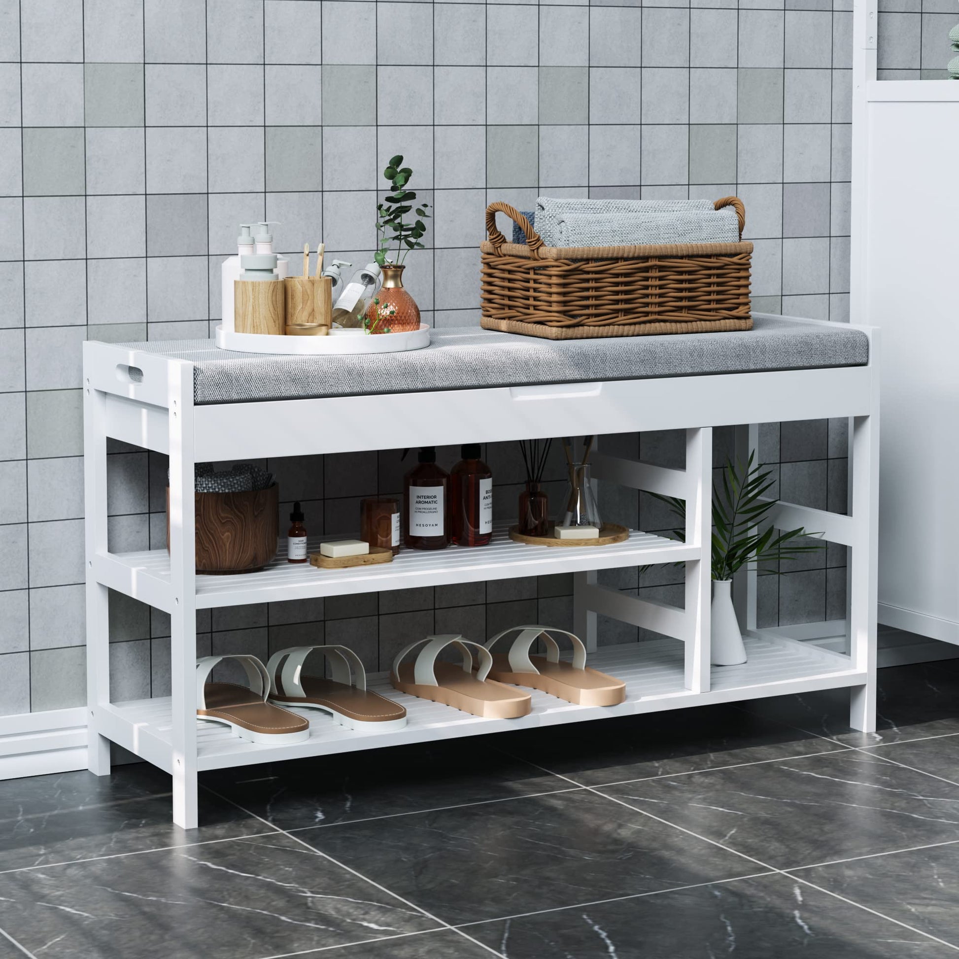 Bamboo Shoe Bench Rack with Storage, Entryway Storage Bench with Padded Seat