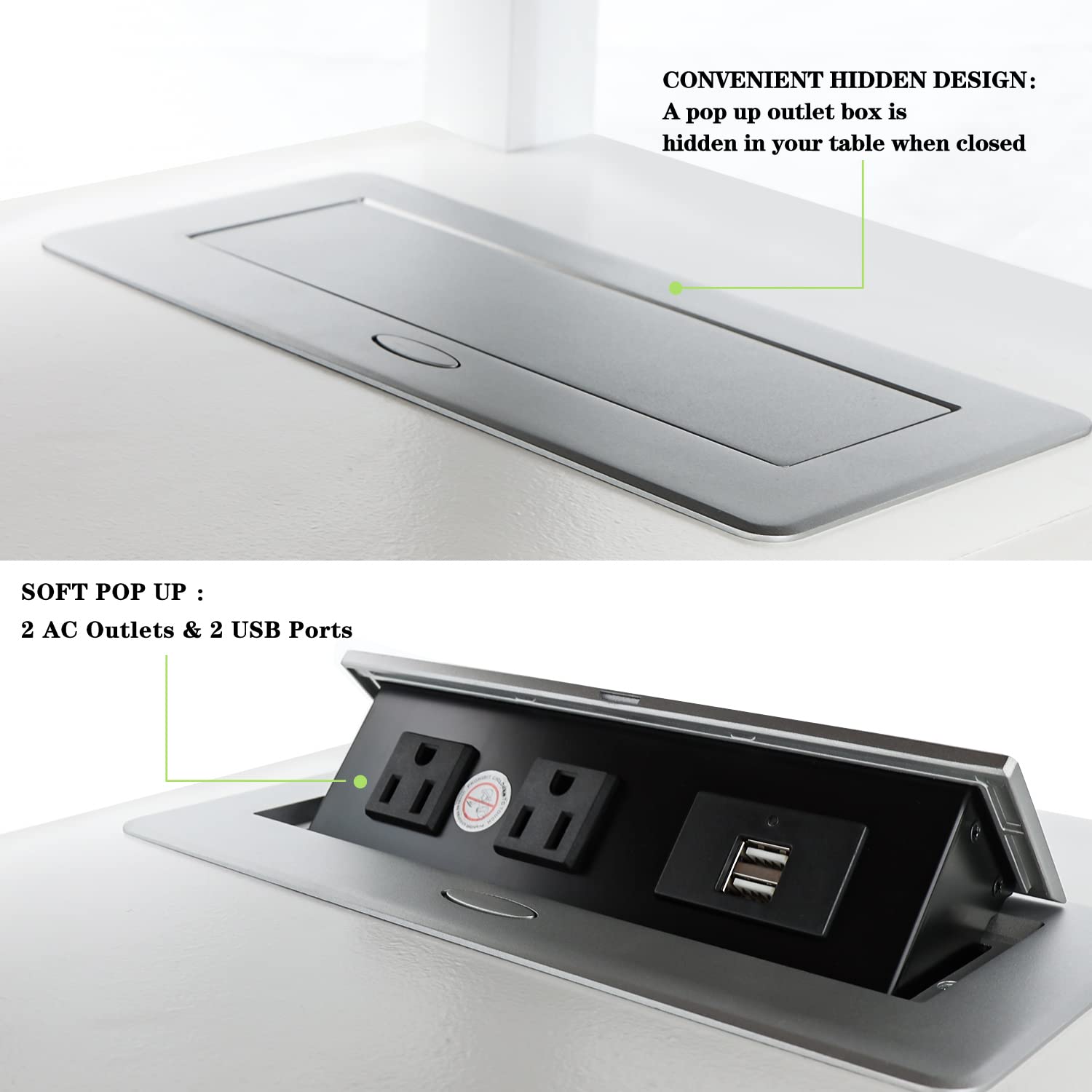 - Side Table with Charging Station The charging station with 4.7ft power includes two 3-prong outlets and 2 USB ports which can easily charge your phone, tablet, desk lamp, or your laptop. The spacing is sufficient, which allows you to charge 4 devices simultaneously.