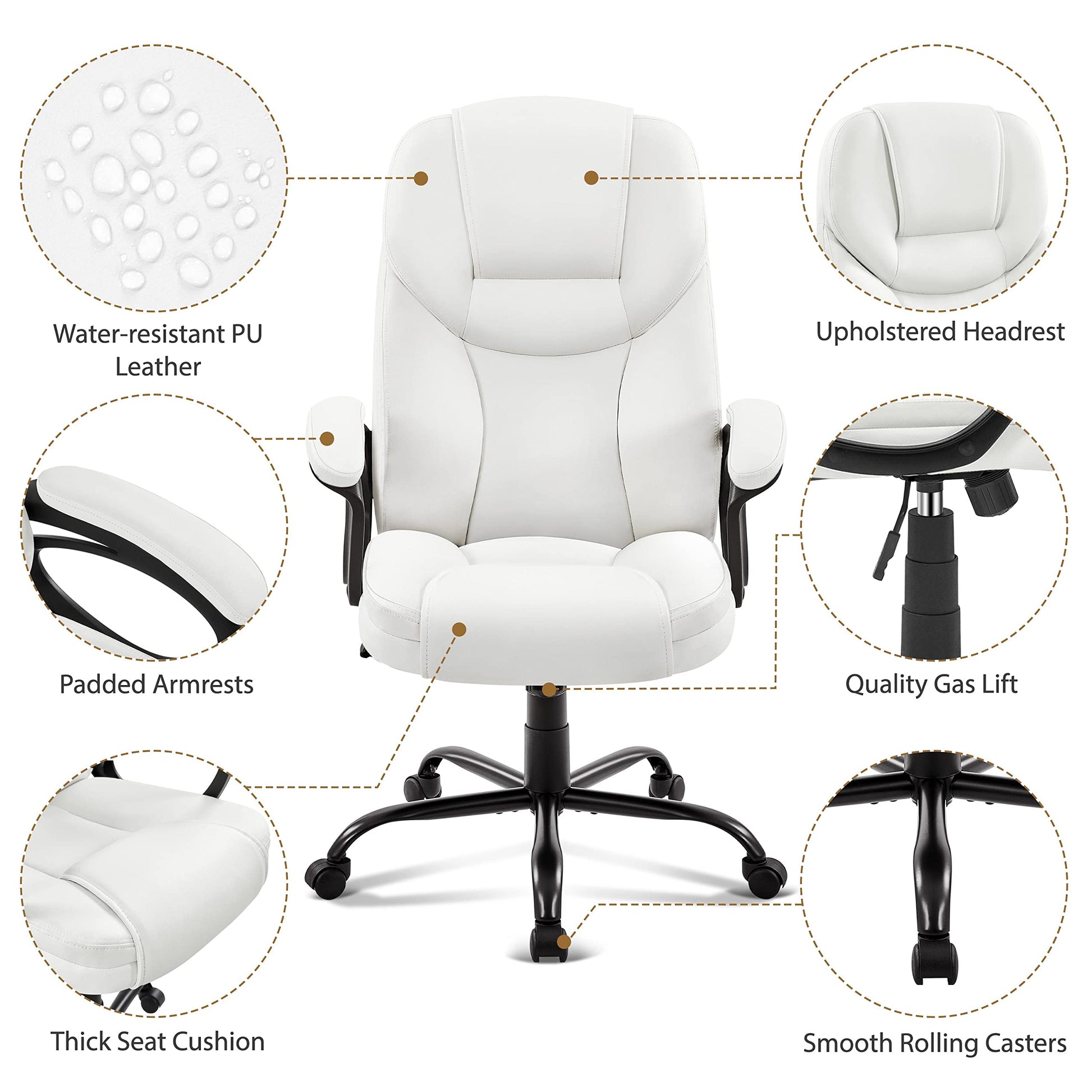 High Back Executive Office Chair - Ergonomic Faux Leather with Large Seat
