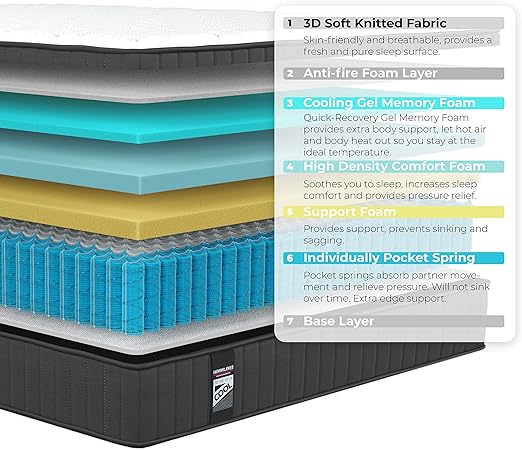 - Multilayered Comfort Design Gel memory foam ensures comfort and cooling. Comfort and supportive foam provide a cozy feel. The mattress bottom has a non-slip and breathable layer for stability.