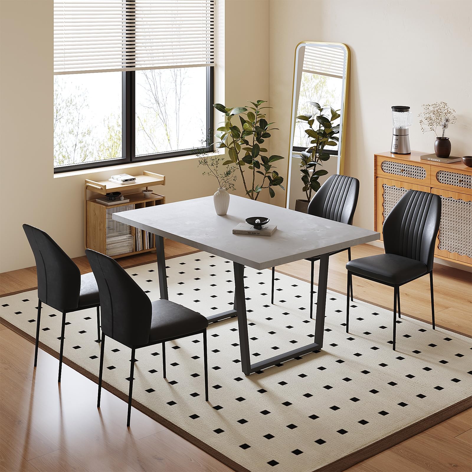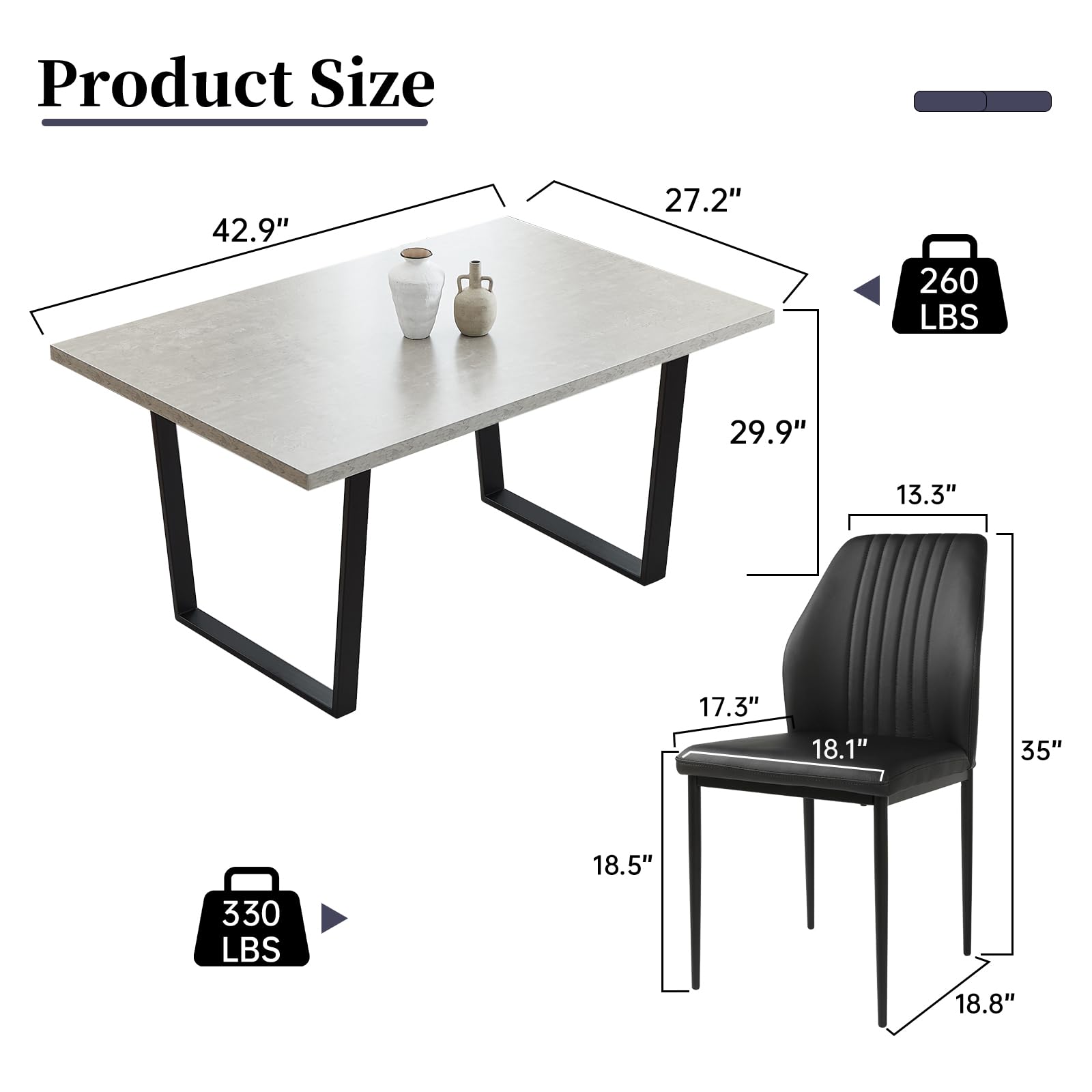 - 5-Piece Design This dining set includes 1 dining table and 4 black PU leather chairs. Unique light gray table set to match any style of home decor.