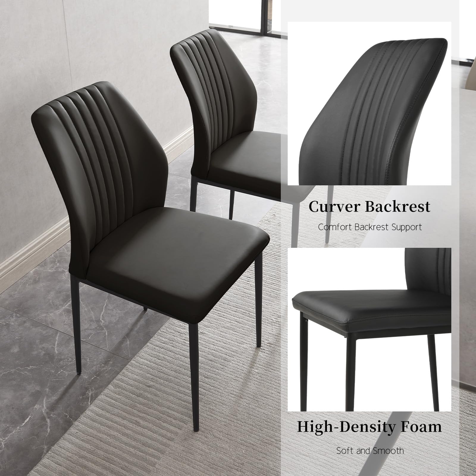 - Modern Dining Chair This leather dining chair is made of high-quality PU leather wrapped with ergonomic curved backs and high elastic sponge, which is comfortable and easy to clean. Carbon steel legs will not deform.