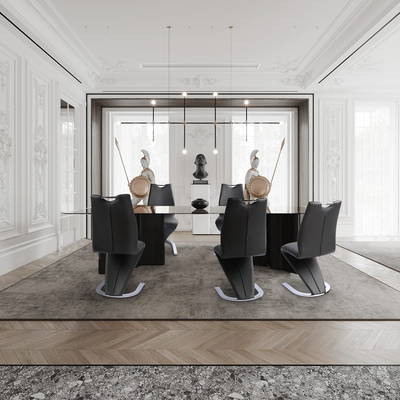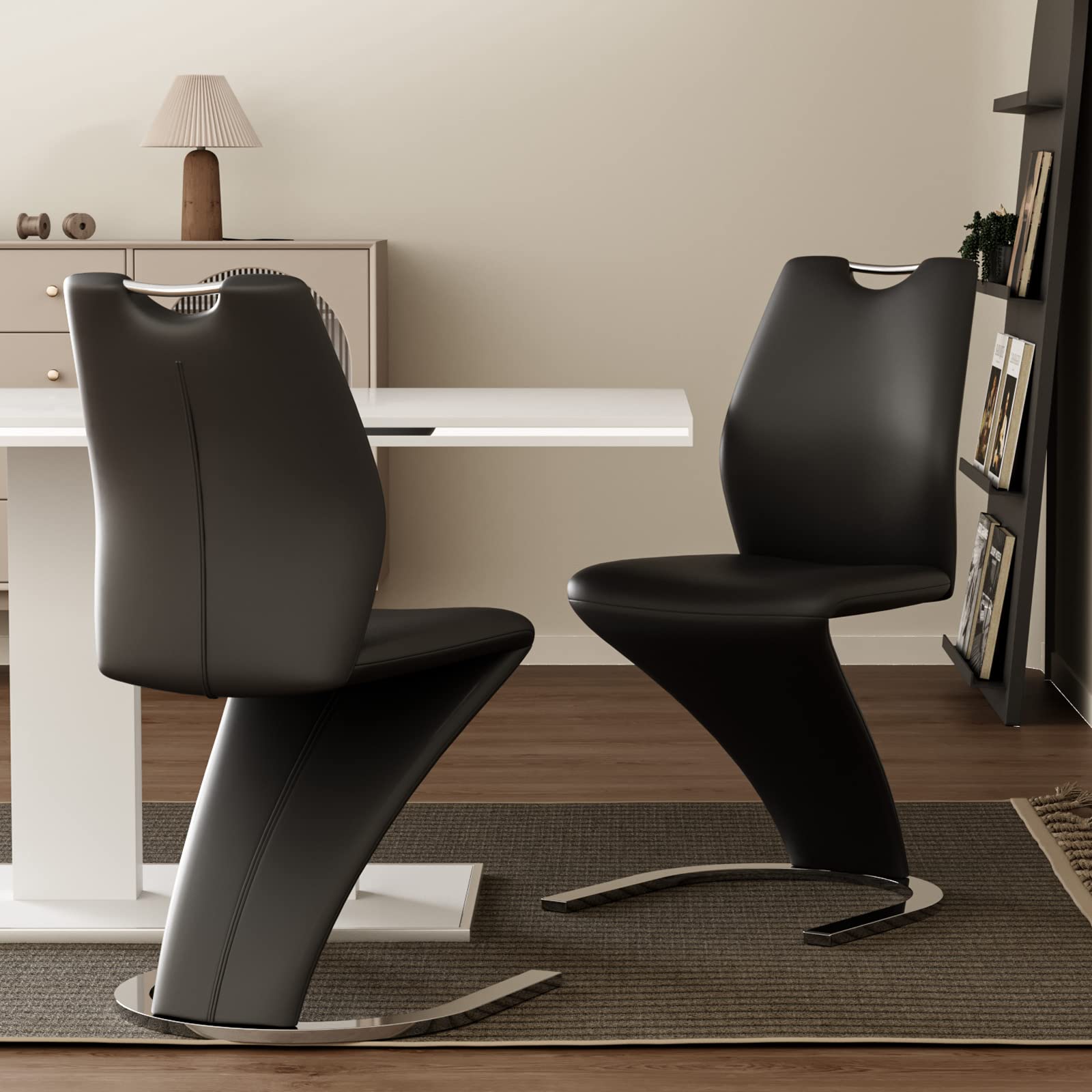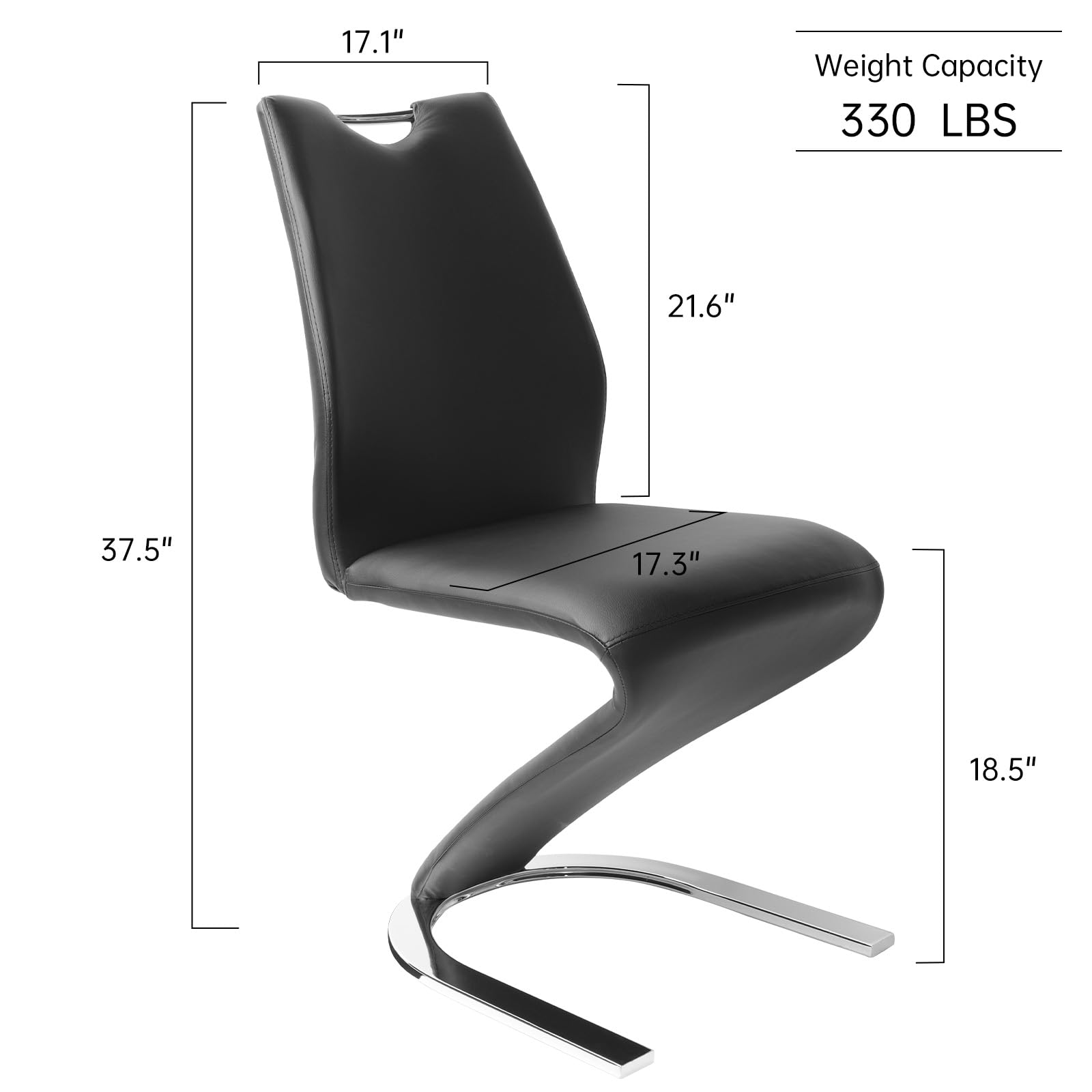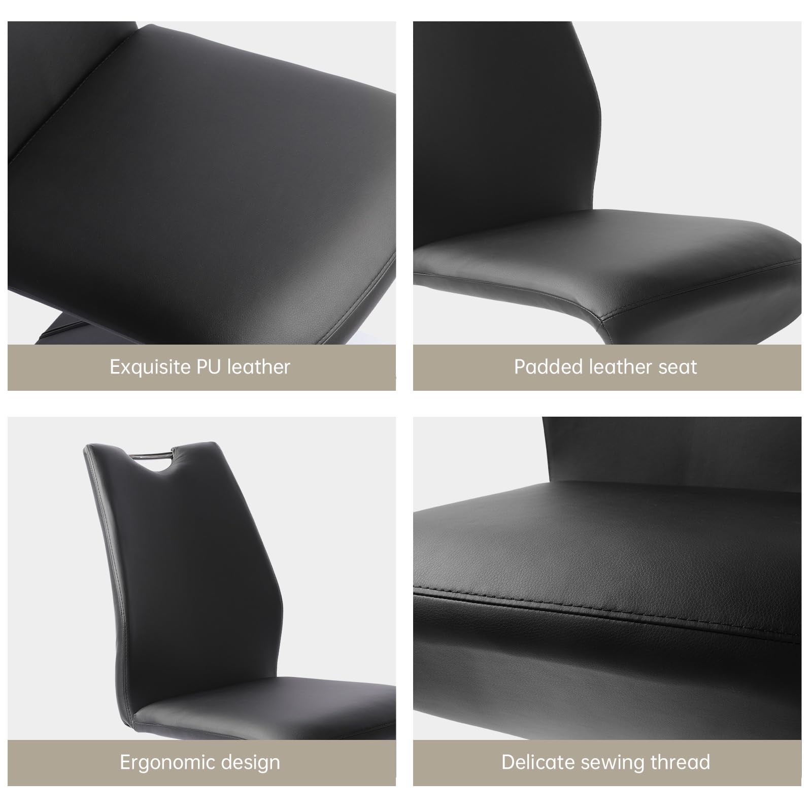 - Upgrade your dining experience with our Mermaid Dining Chairs Set of 2. These modern armless chairs are designed to elevate your kitchen or dining room ambiance. Featuring sleek PU leather upholstery and cushioned seats, they offer both style and comfort. Supported by sturdy metal legs, these chairs ensure durability and stability. Available in a classic black finish, this set of 2 chairs is perfect for adding contemporary flair to your home decor