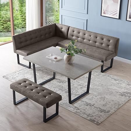 - [Durable MDF Wooden Material] The dining table is made of thickened high grade MDF and HPL board, scratch resistant and waterproof. The table legs are made of carbon steel, sturdy and durable