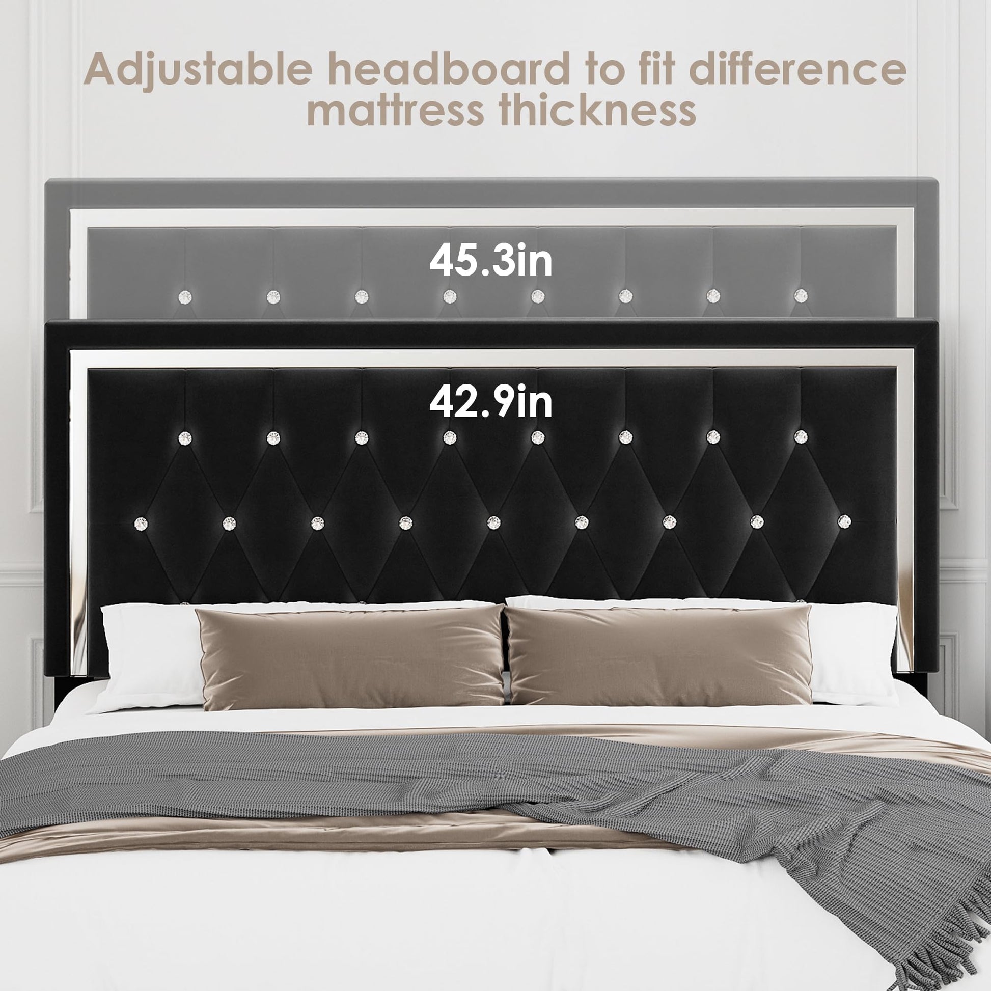 - Upholstered Bed Frame: The bed frame features skin-friendly velvet fabric for a fine, soft and fuzzy touch and is filled with high-resilience sponge for long-lasting support and great comfort when you're leaning against the head of bed