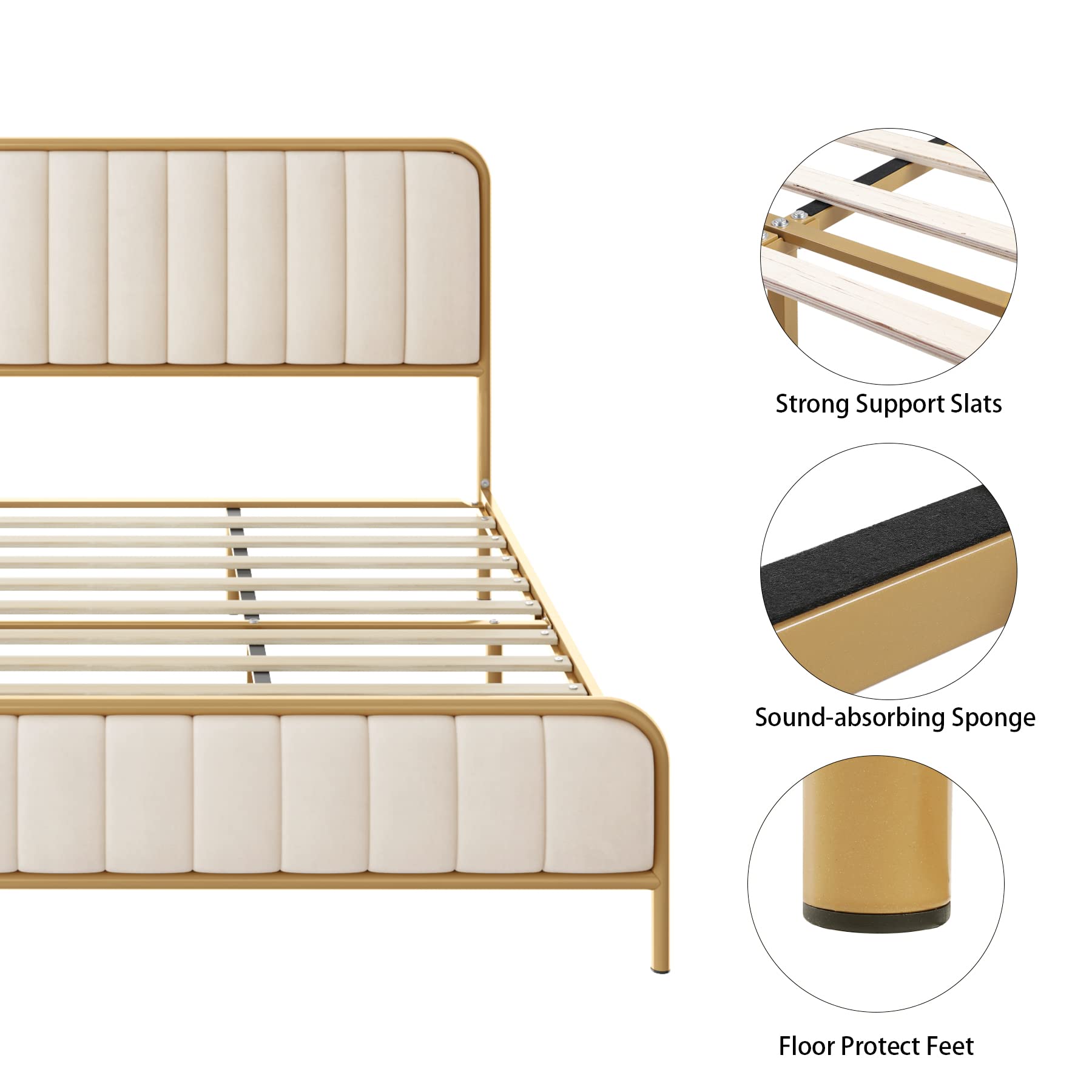 - MODERN DESIGN: With a tufted headboard design and golden metal foundation, this contemporary style queen size bed frame will look classic in any bedroom. Perfect for modern bedrooms, the upholstered platform bed frame is not only stylish but functional as well