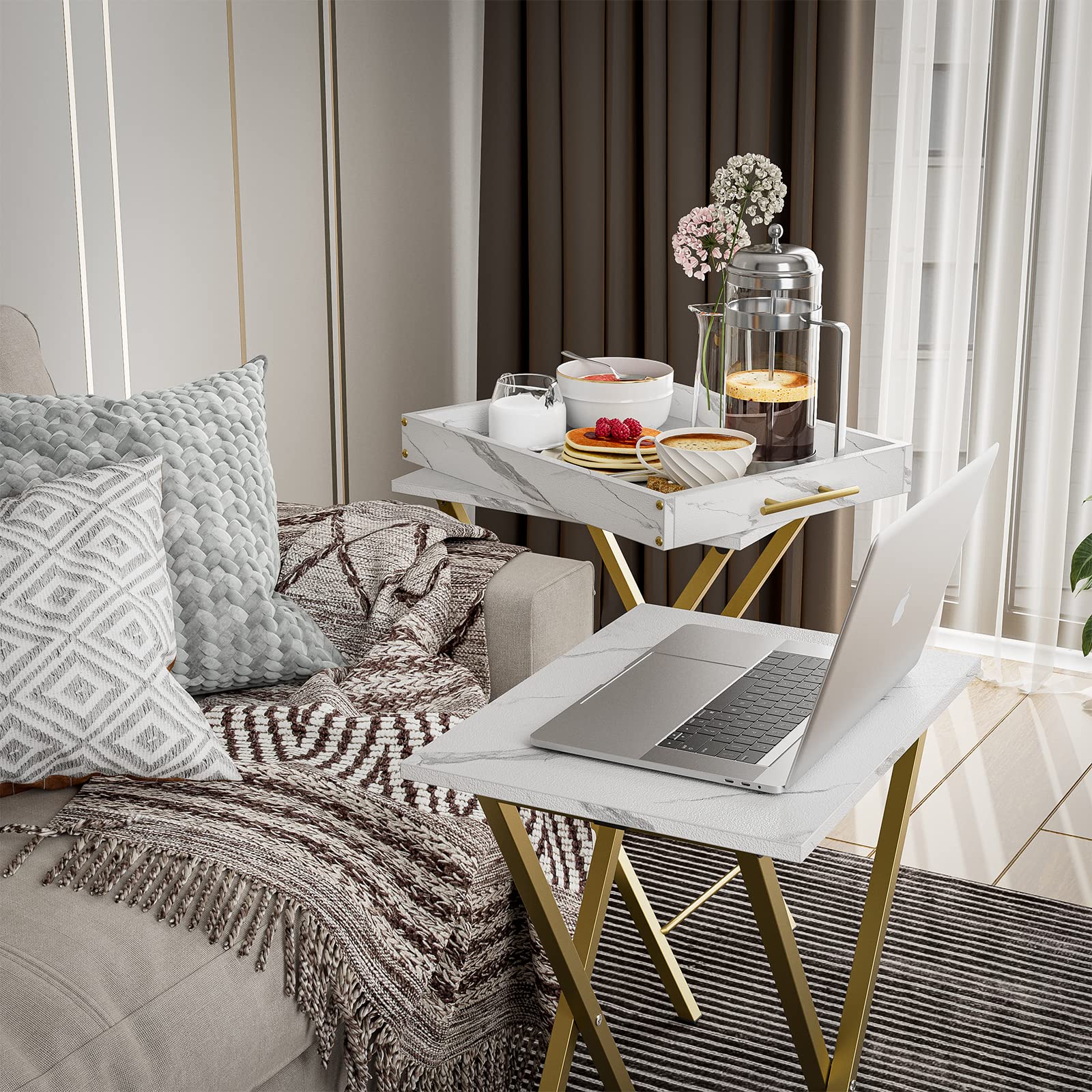 Folding TV Tray Tables, Set of 2 Side Table for Small Place, Snack Eating Tables at Couch