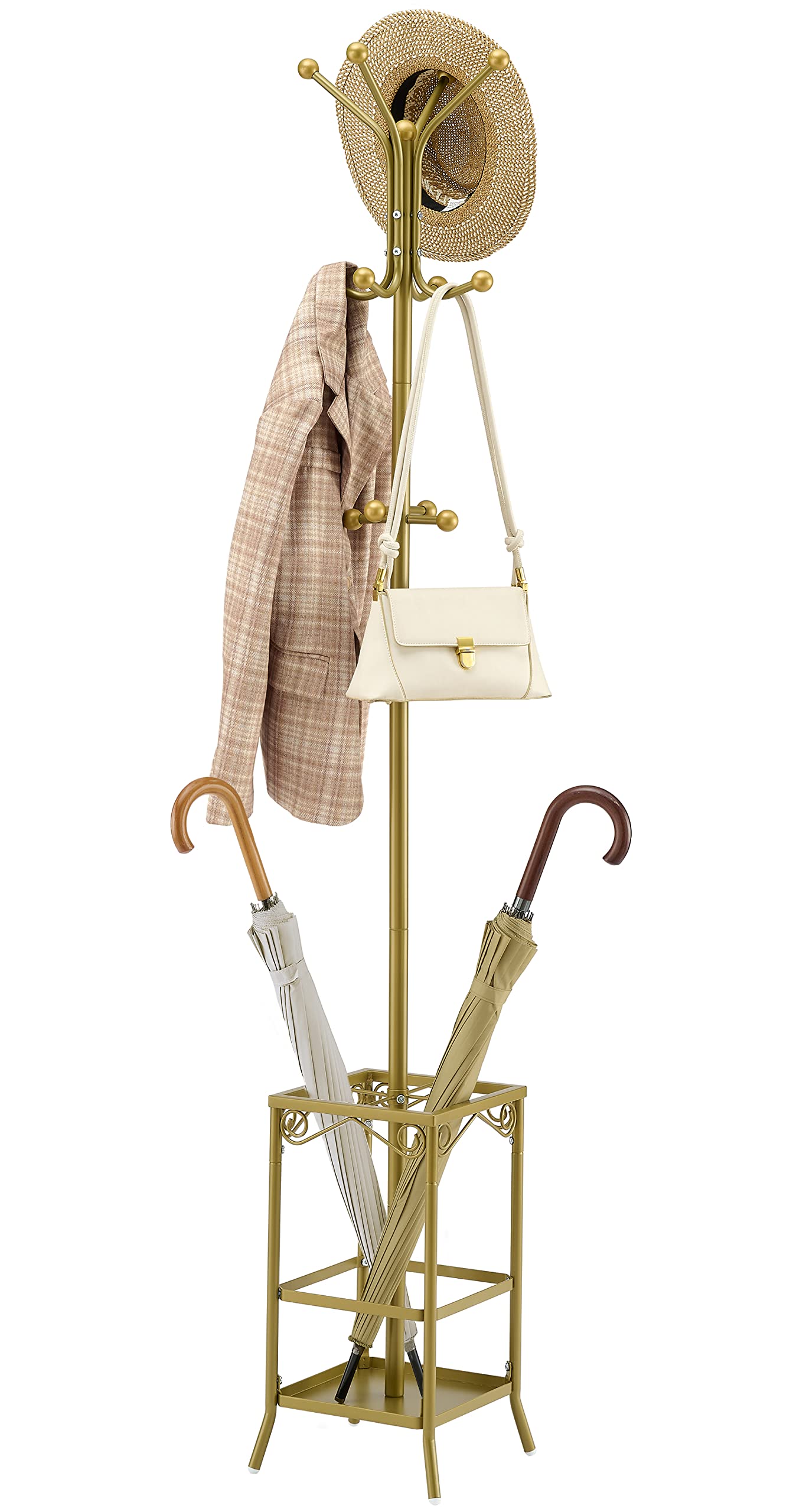 - Multi-purpose Design :It's perfect coat rack with umbrella stand, make it easy to organize jackets, coats, scarves, hats, ties, and handbags.