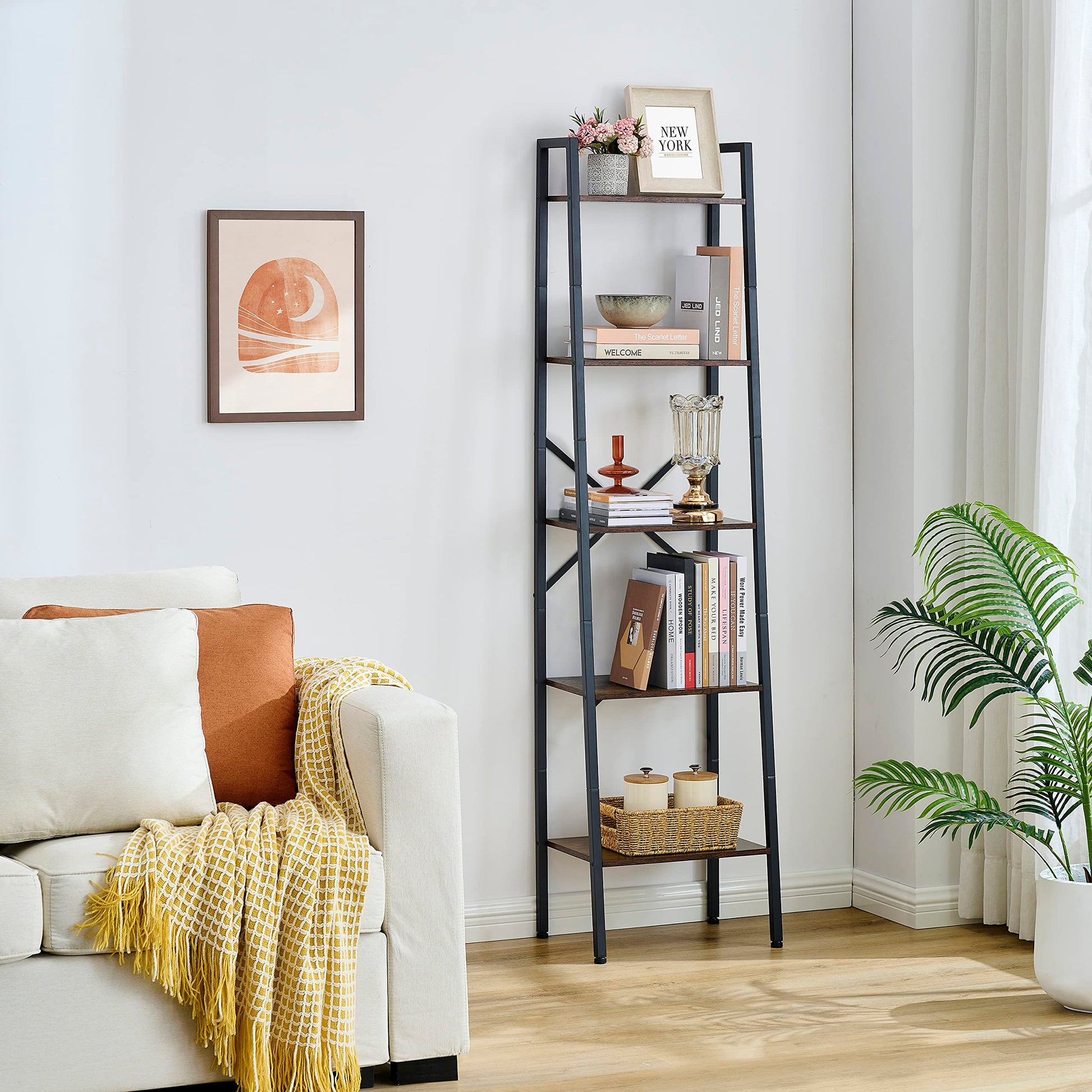 Industrial Ladder Bookshelf, Multifunctional Ladder Shelf