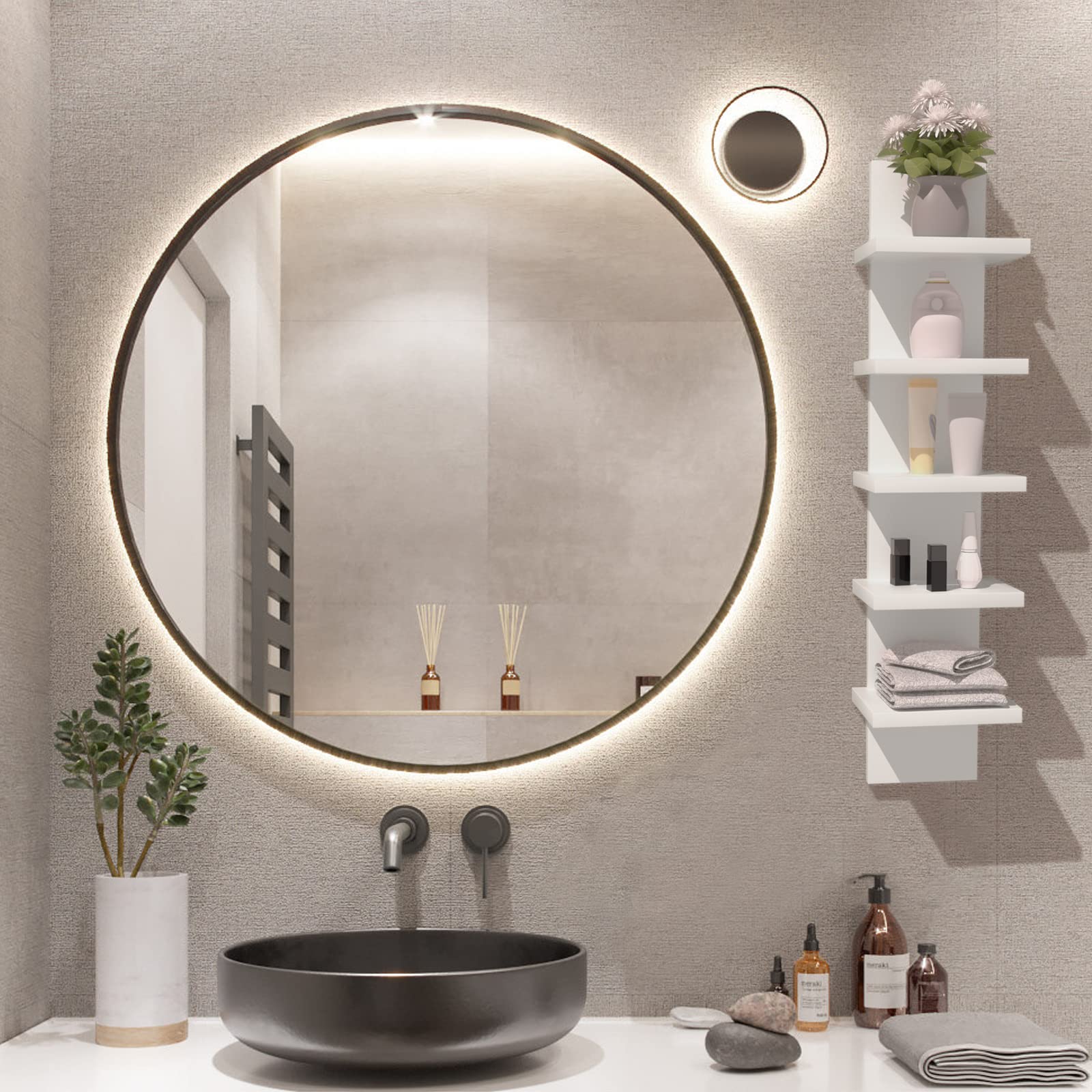 5 Tier Wall Shelf Unit,White Vertical Floating Shelf-Narrow Decorative Wall Mount Modern