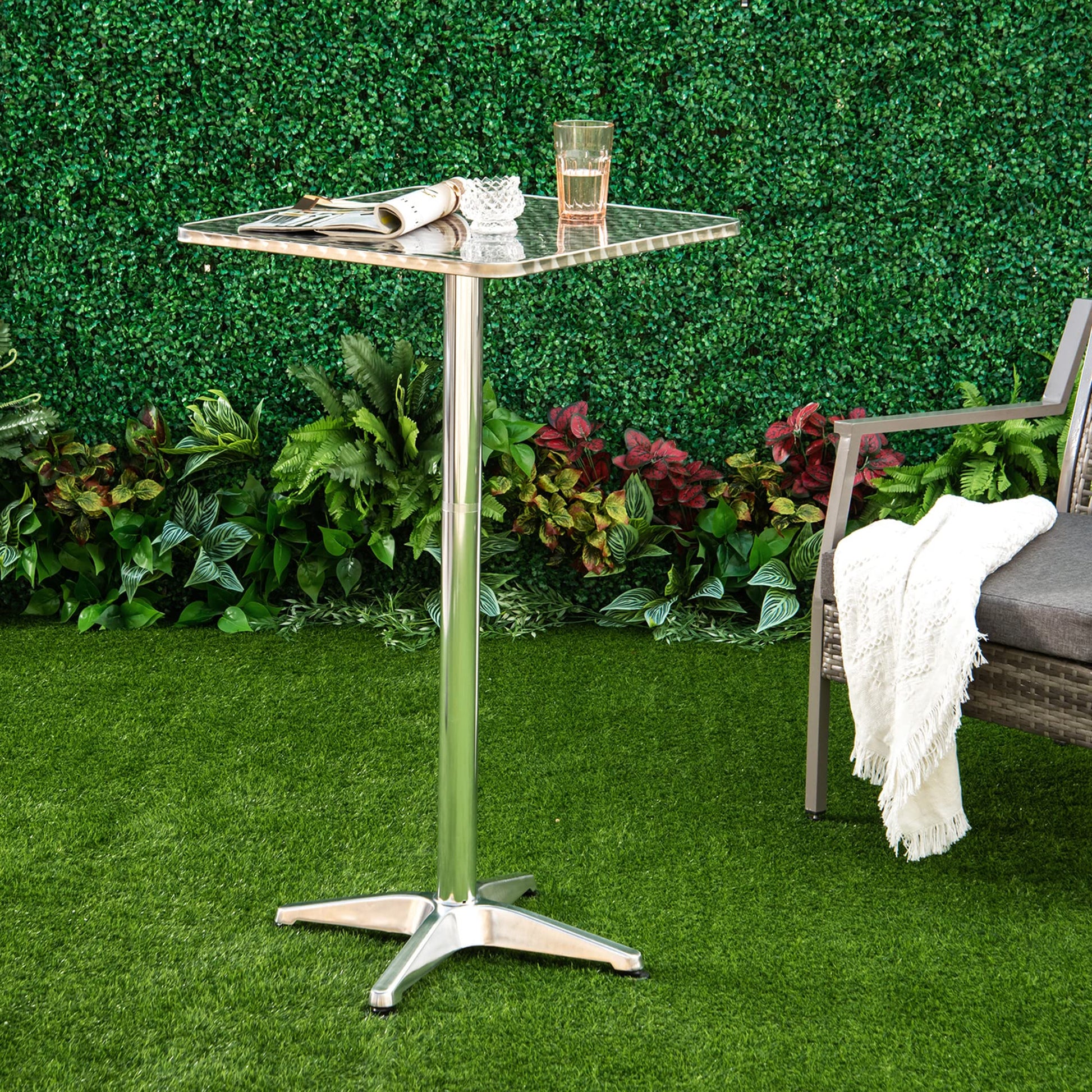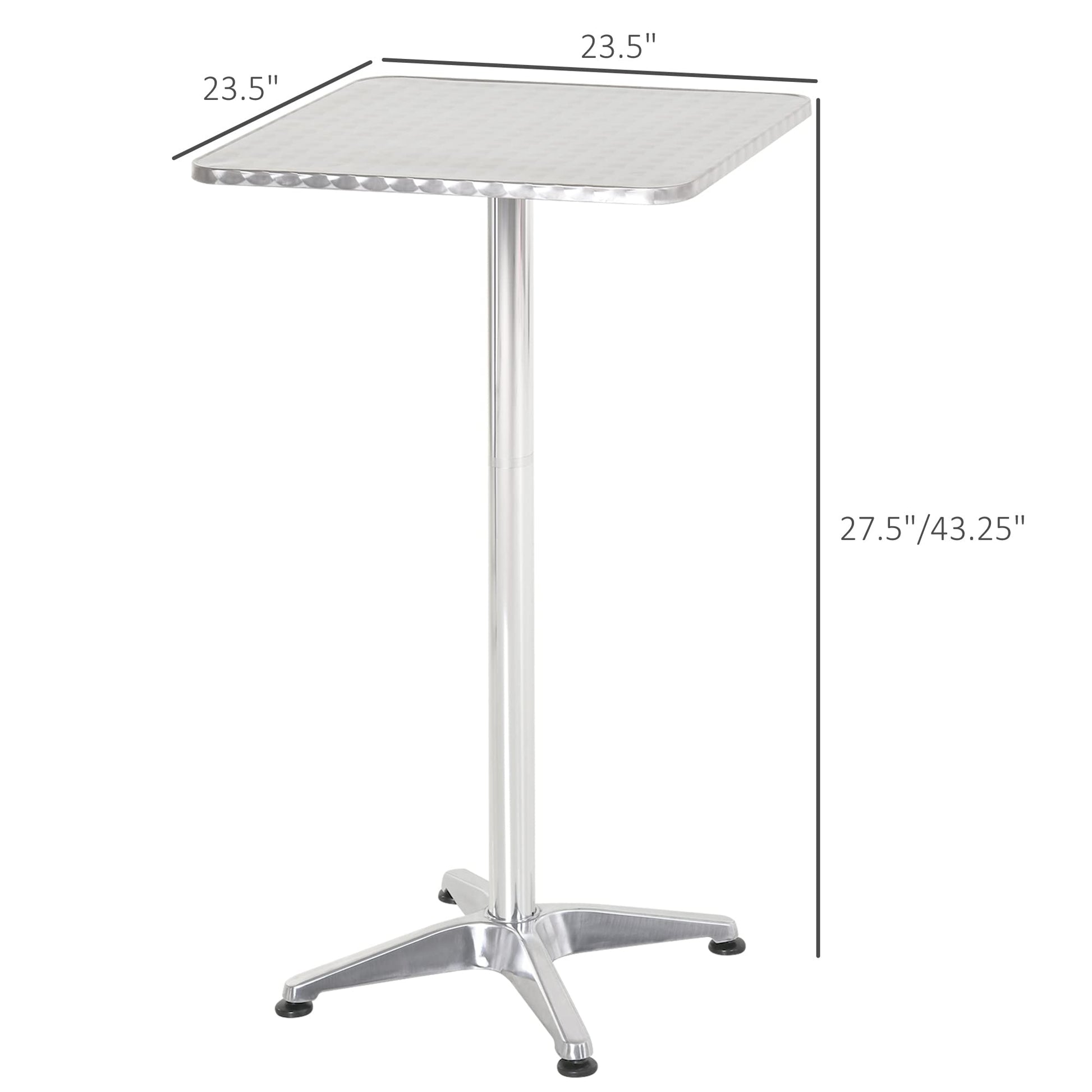 24 Inch Square Bar Table 43" H Adjustable Stainless Steel Top Aluminum Frame