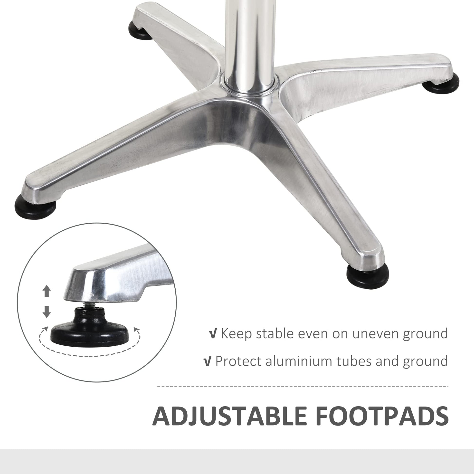 - Leveling Feet: Four conveniently threaded feet can be adjusted to compensate for uneven ground to help create a steady tabletop surface for entertaining, ideal for outdoor dining or dining on a rough surface.