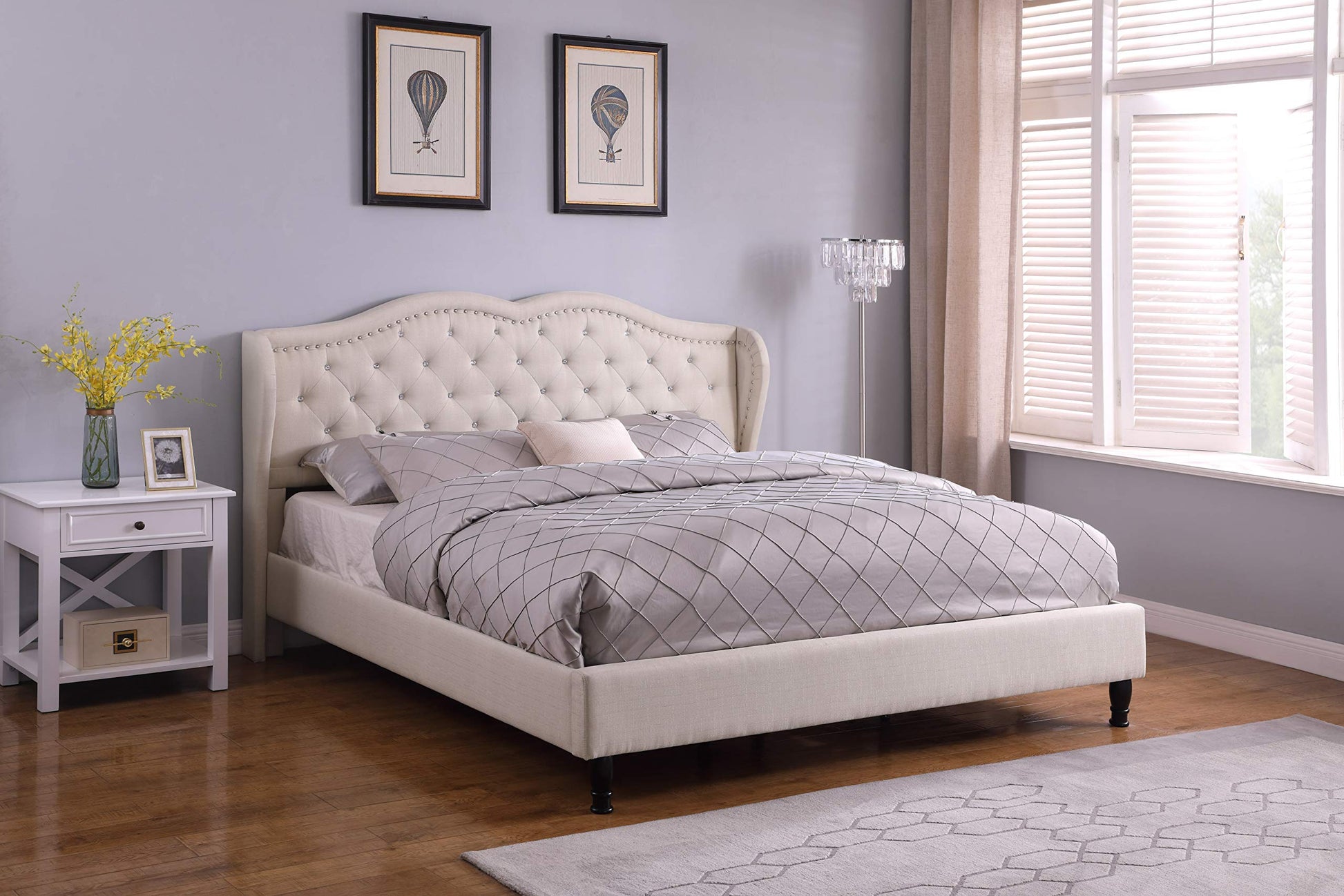 Premiere Curved Classics Cloth Light Beige Linen 51" Tall Headboard Platform Bed