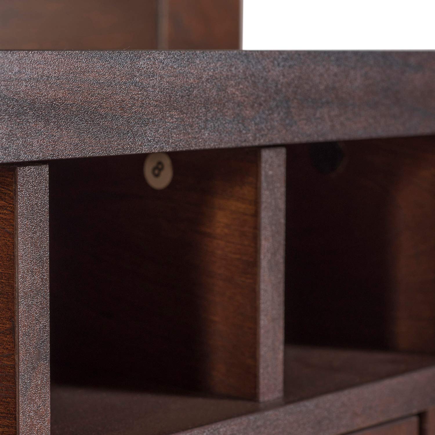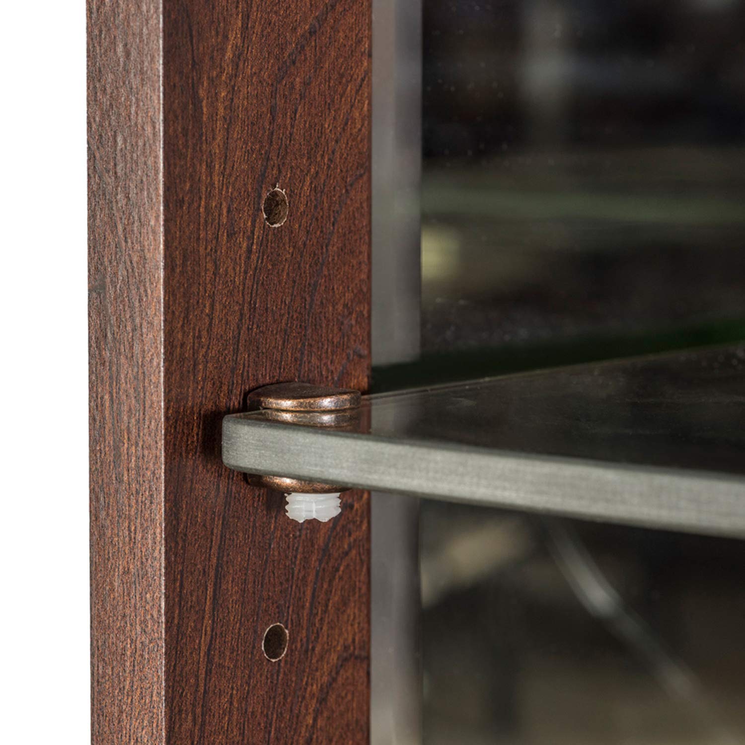 - Wood Frame in a Charming mahogany Finish: This corner cabinet has a stylish wooden frame in a charming finish which combines old fashioned charm with a striking modern look