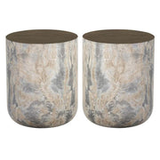 Diaz 16" Drum Modern Concrete End Table in Antique Brass - Set of 2