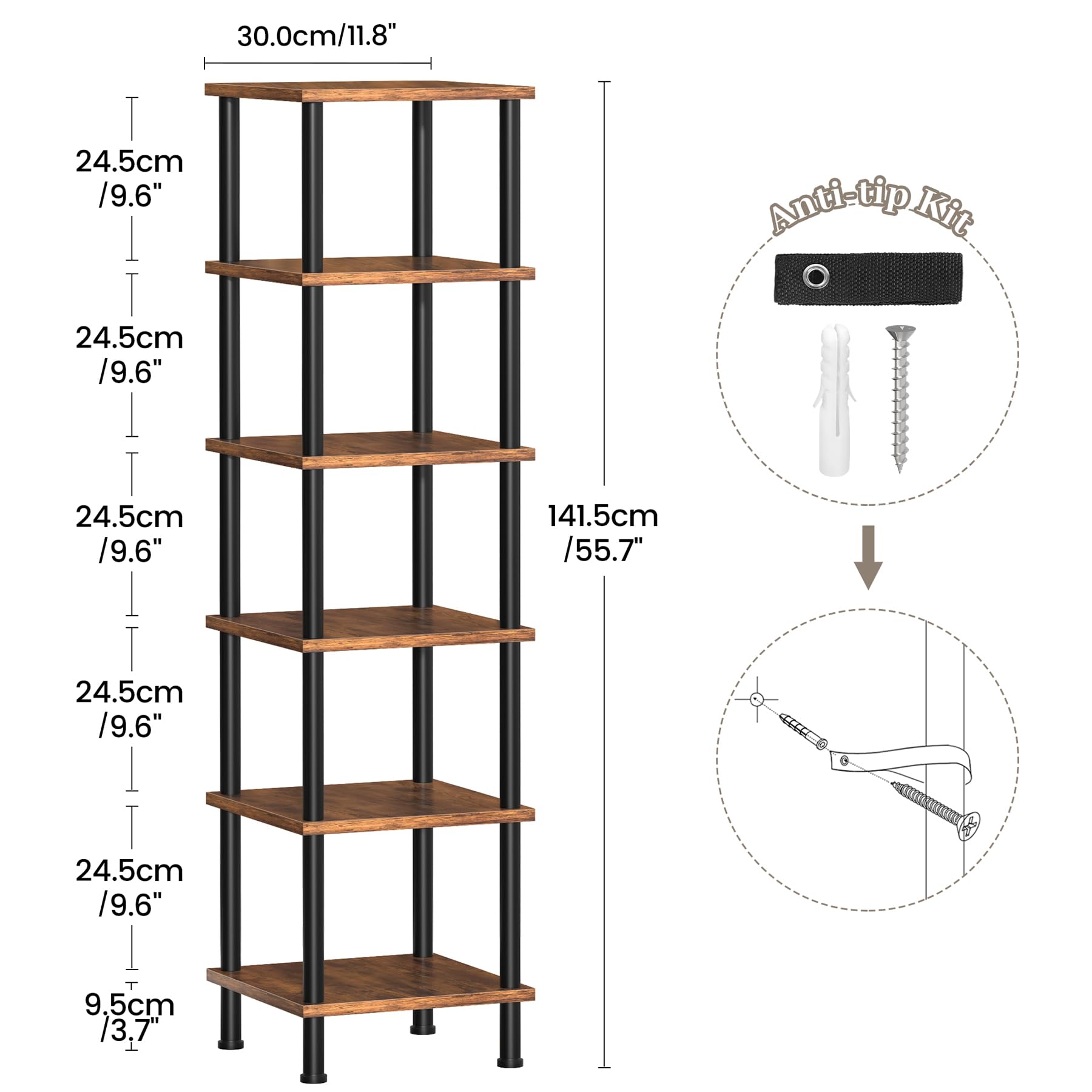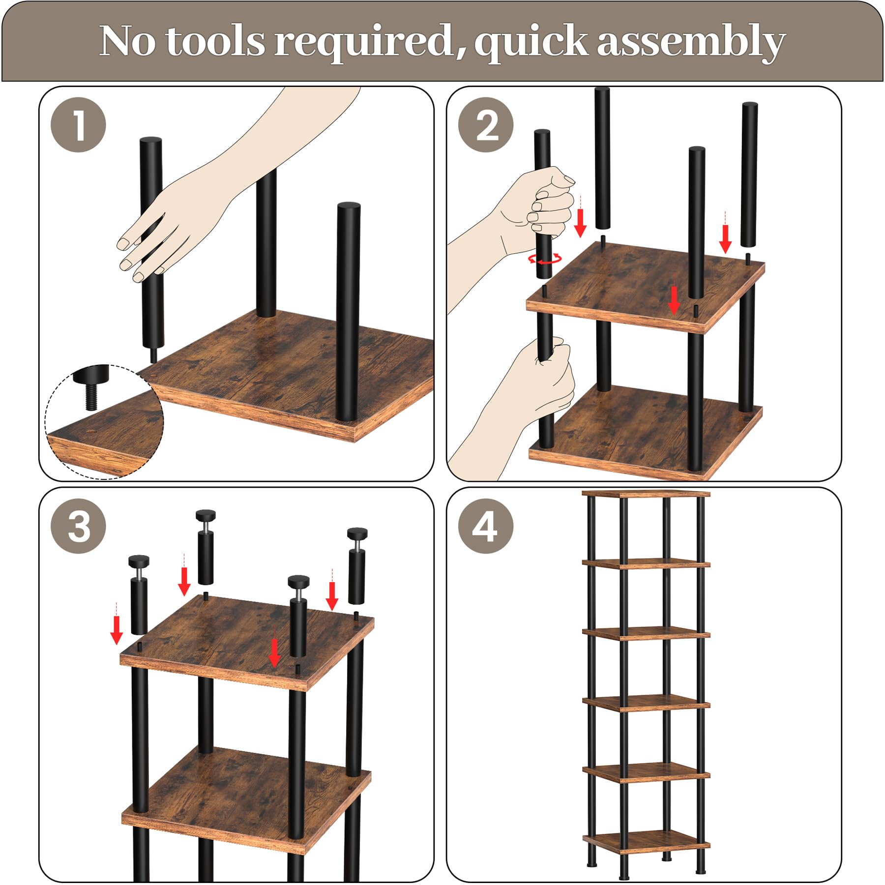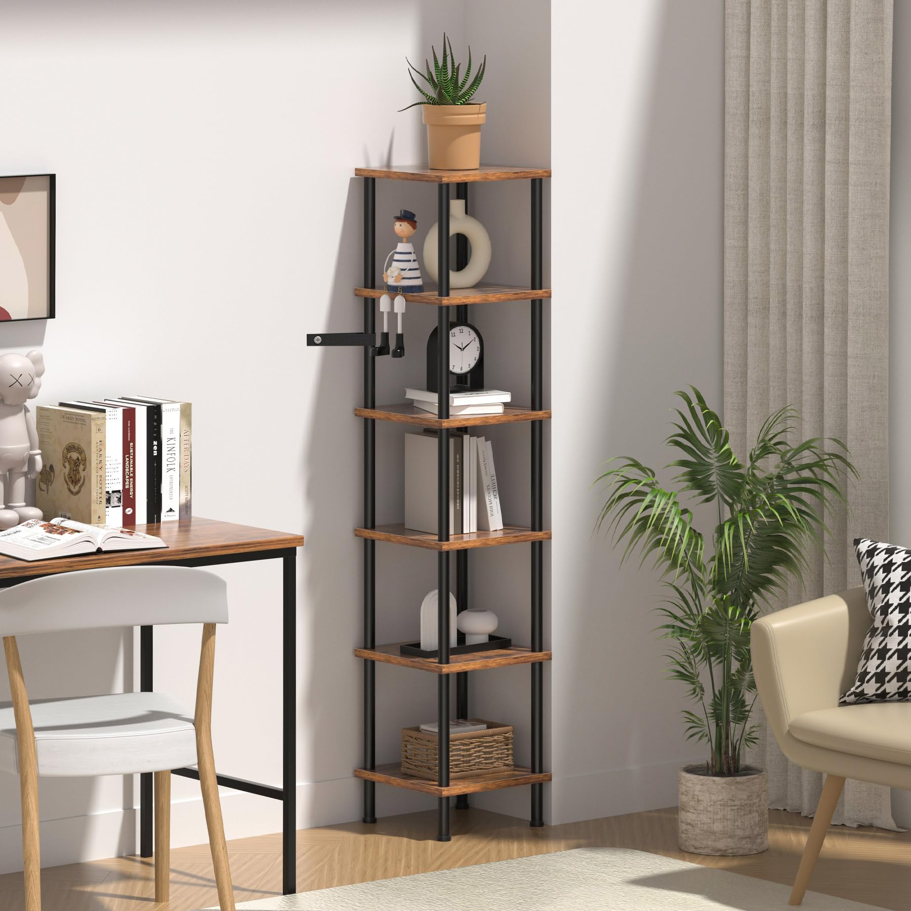 Homedawn Corner Shelf, Corner Bookcase, Industrial 6-Tier Square Shelf Stand Display Rack,Wall Corner Bookshelf,Tall Shelf Plant Stand for Small Spaces, Living Room, Home Office, Kitchen