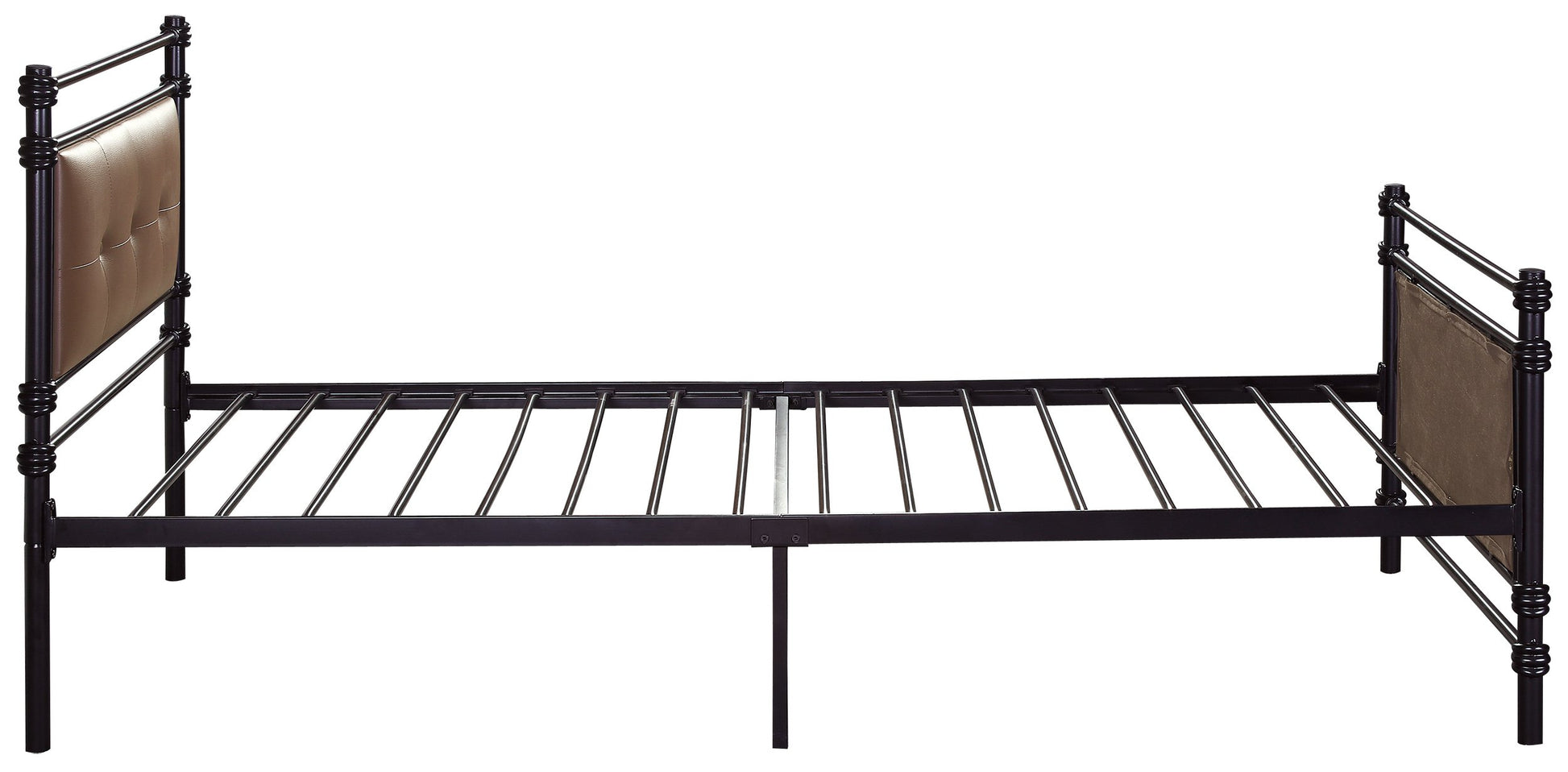 Details: Modern traditional styling is utilized to create the design of the Jayla Collection. Black metal framing is perfectly contrasted by the brown bi-cast vinyl button-tufted inserts of the headboard and footboard, creating a unique look for your bedroom. The collection is offered in twin (B06XQ252WK) and full(B06XQG8L7B) size beds.