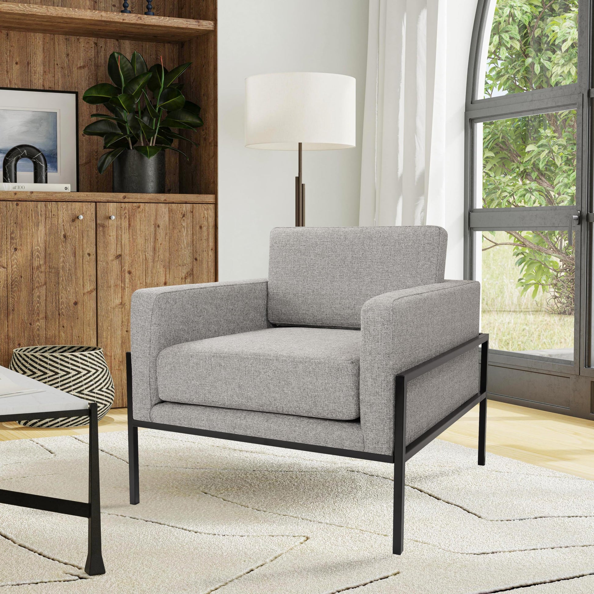 Modern Metal Frame Accent Chair Home Décor|Accent Chairs for Living Room & Bedroom - Sustainable Gray Woven