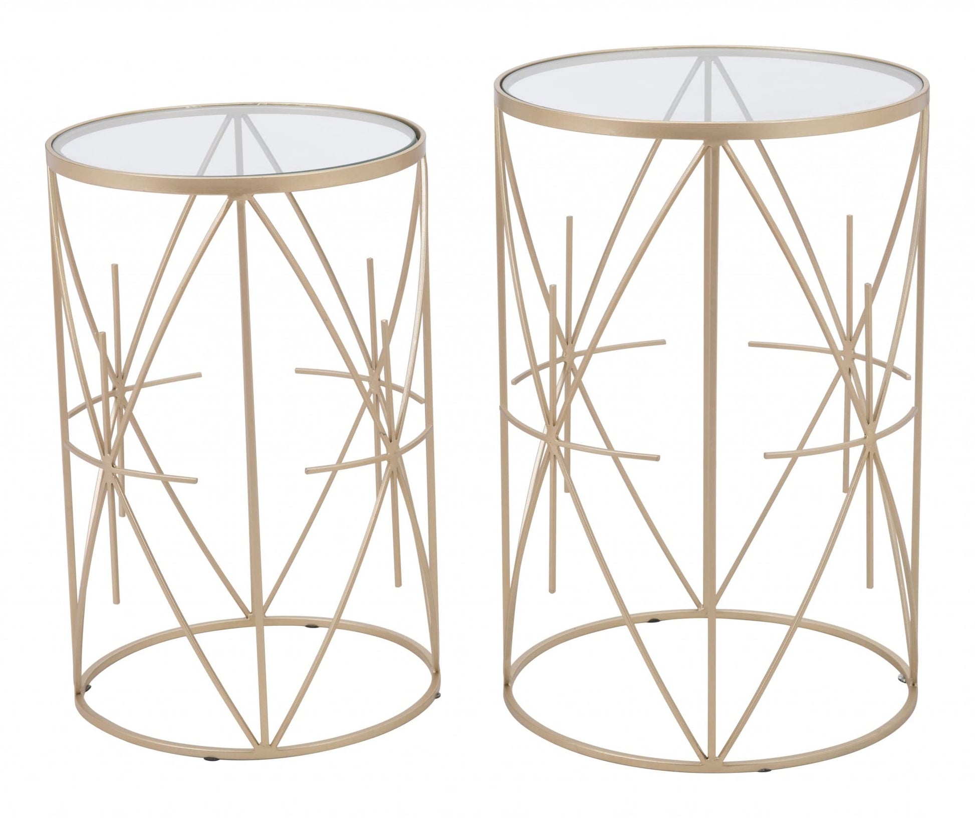 Set of Two Geometric Gold and Glass Side Tables