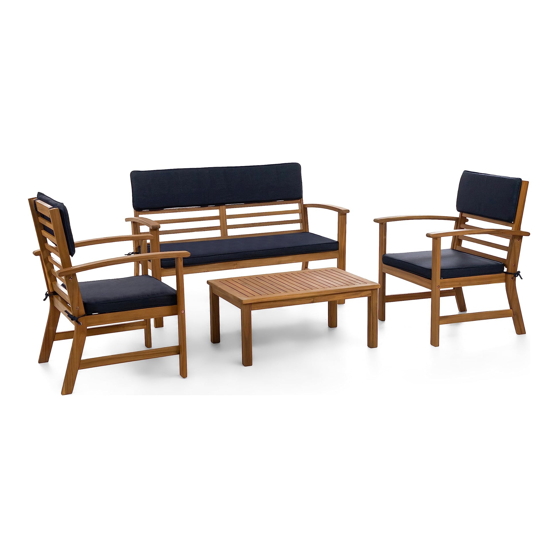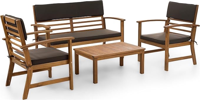 Trogon Farmhouse Acacia Wood 4-Piece Patio Set, Rectangle Table