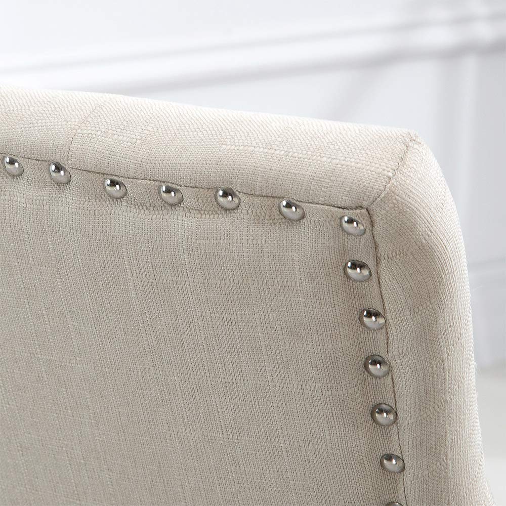 - Fabric Upholstered Dining Armchairs Headnail Button Trim: the chair is covered with line fabric material and padding with upholstered foam with button trim, rubber wood legs is more solid, enhancing the chair seat more soft and solid and modern style