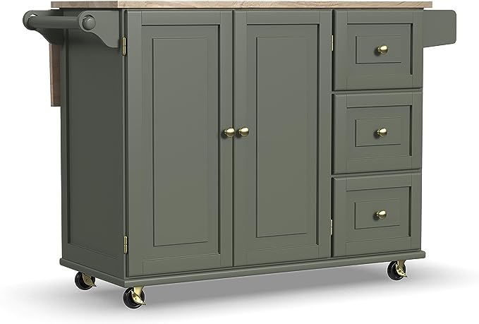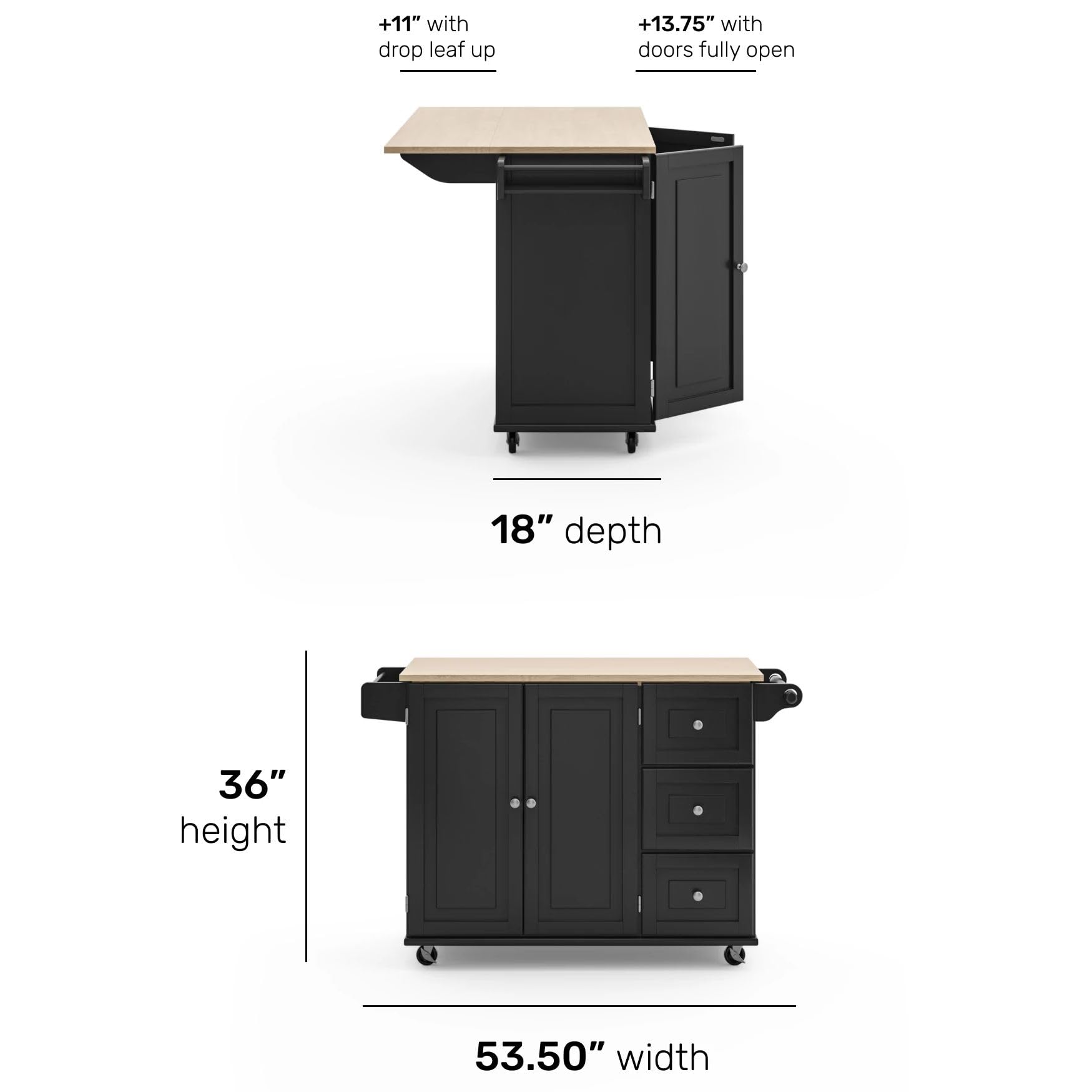 Dolly Madison Kitchen Cart with Wood Top and Drop Leaf Breakfast Bar