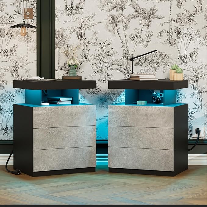- 19.7"L x 15.8"D x 26.8"H. Compact size nightstand that provides ample storage space without taking up too much floor space, making it perfect for smaller bedrooms. This modern LED nightstand comes with clear instructions, you can also refer to the installation video on the web page first.