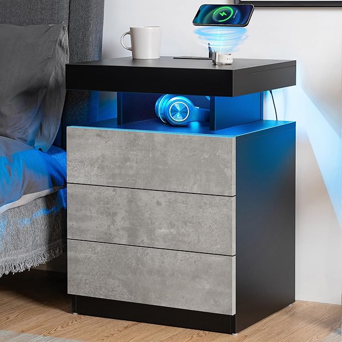 - Power strip on top of the nightstand with a built-in 3-in-1 charging station (wireless charging, wired USB port, Type-C port, AC outlets) . Our smart nightstand provides you with a variety of charging methods, allowing you to charge multiple electronic devices at the same time.