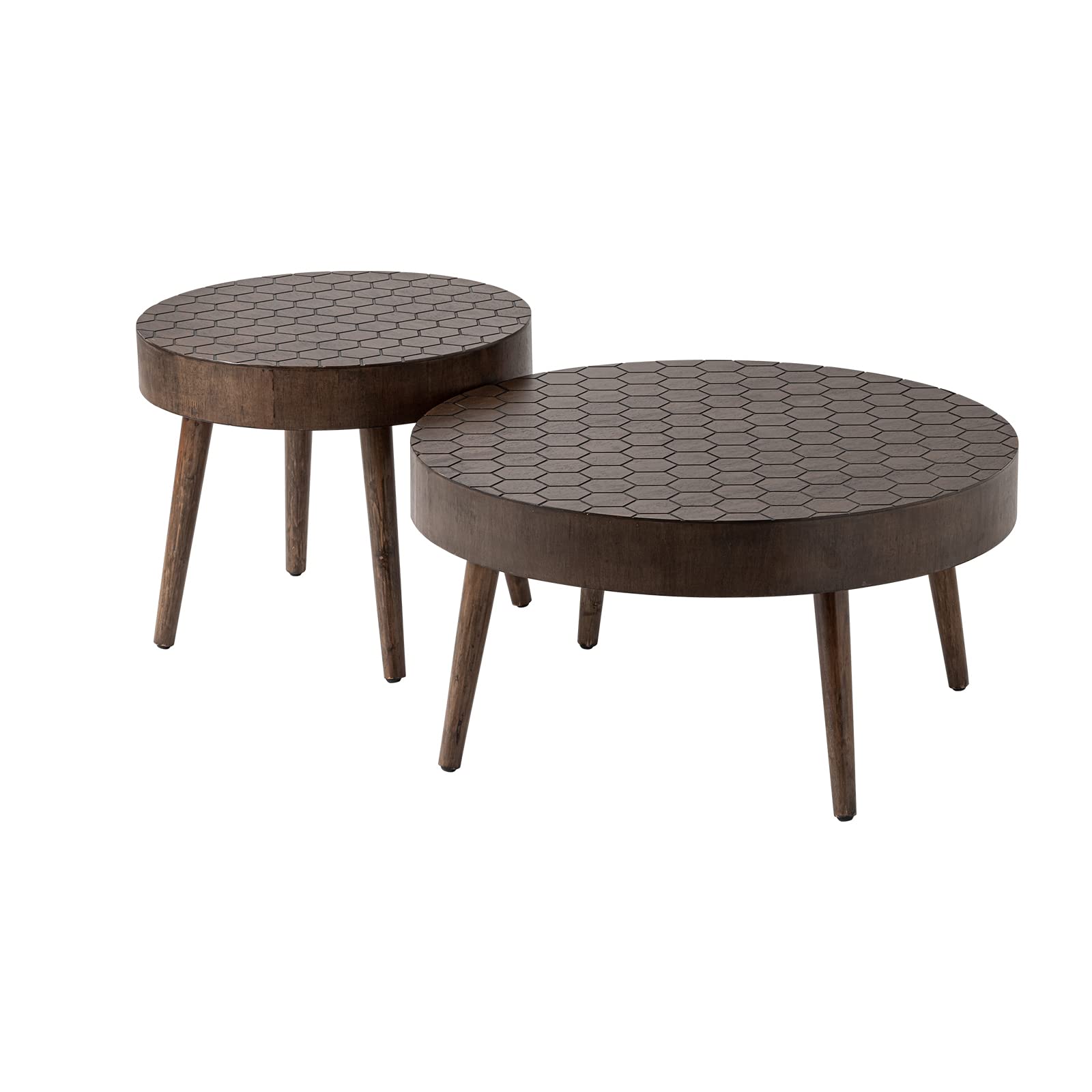 Round Coffee Table Set w Honeycomb Pattern Tabletop