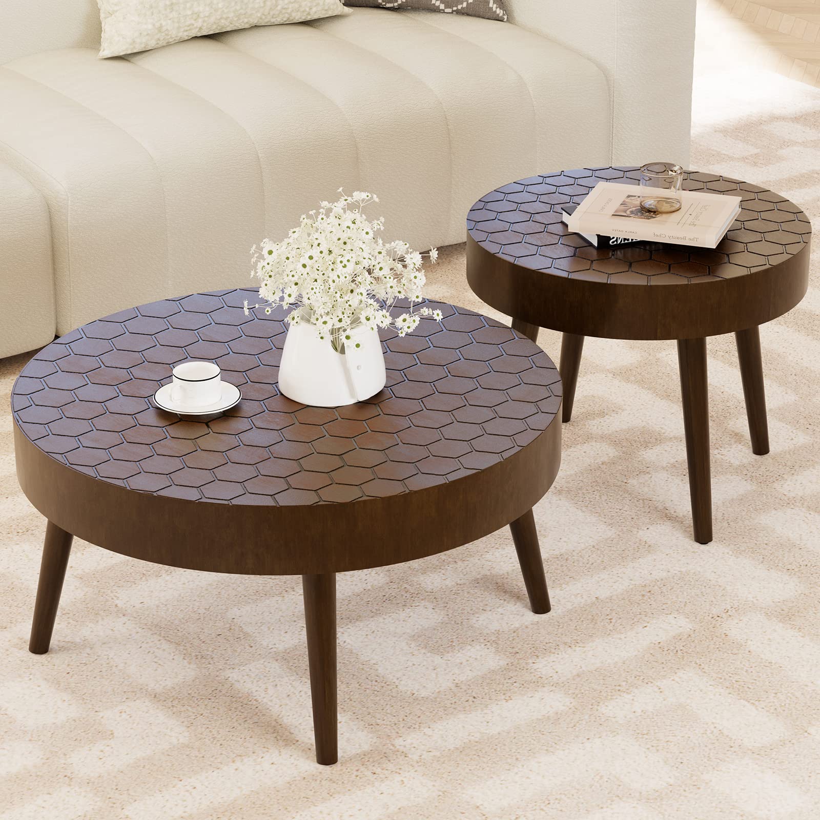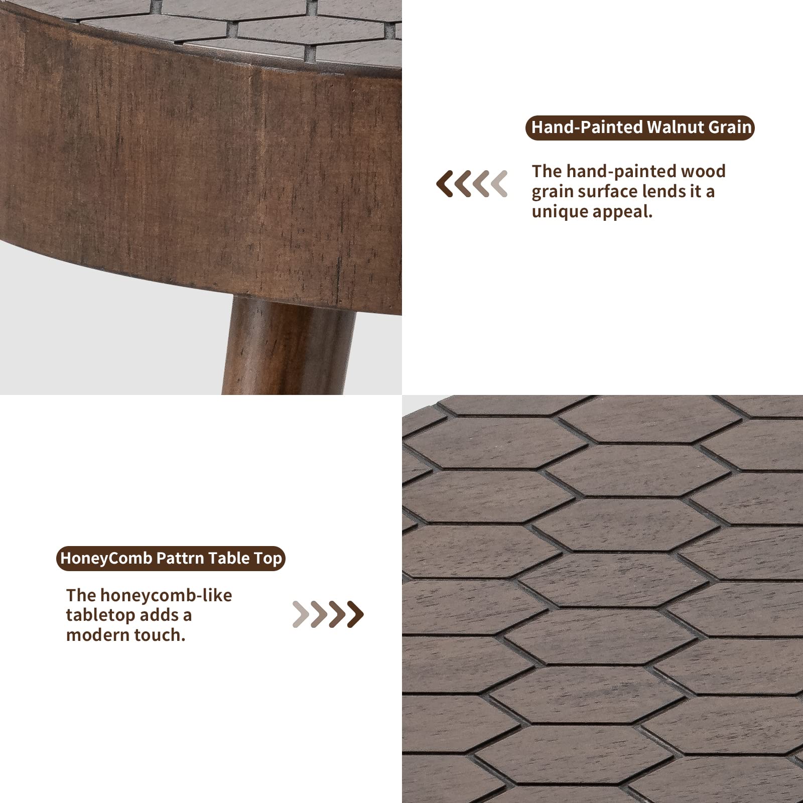 Product Dimensions 31.5"D x 31.5"W x 16"H Color Walnut Table Design Coffee Table Special Feature Wood Grain Finish, Honeycomb Pattern Tabletop, Wood Legs