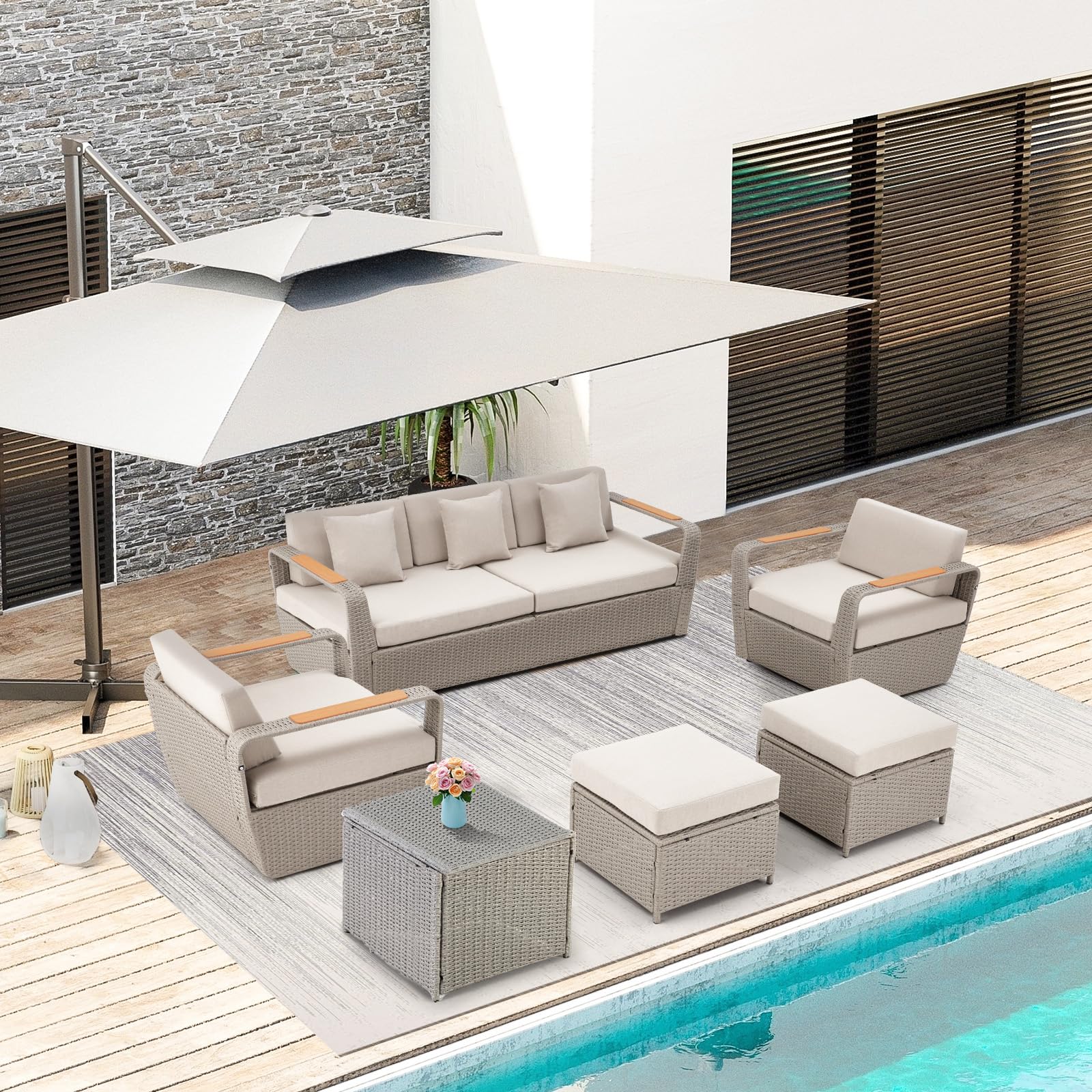 6 Pieces Patio Furniture Set, Outdoor Sectional Conversation Rattan Sofa Set