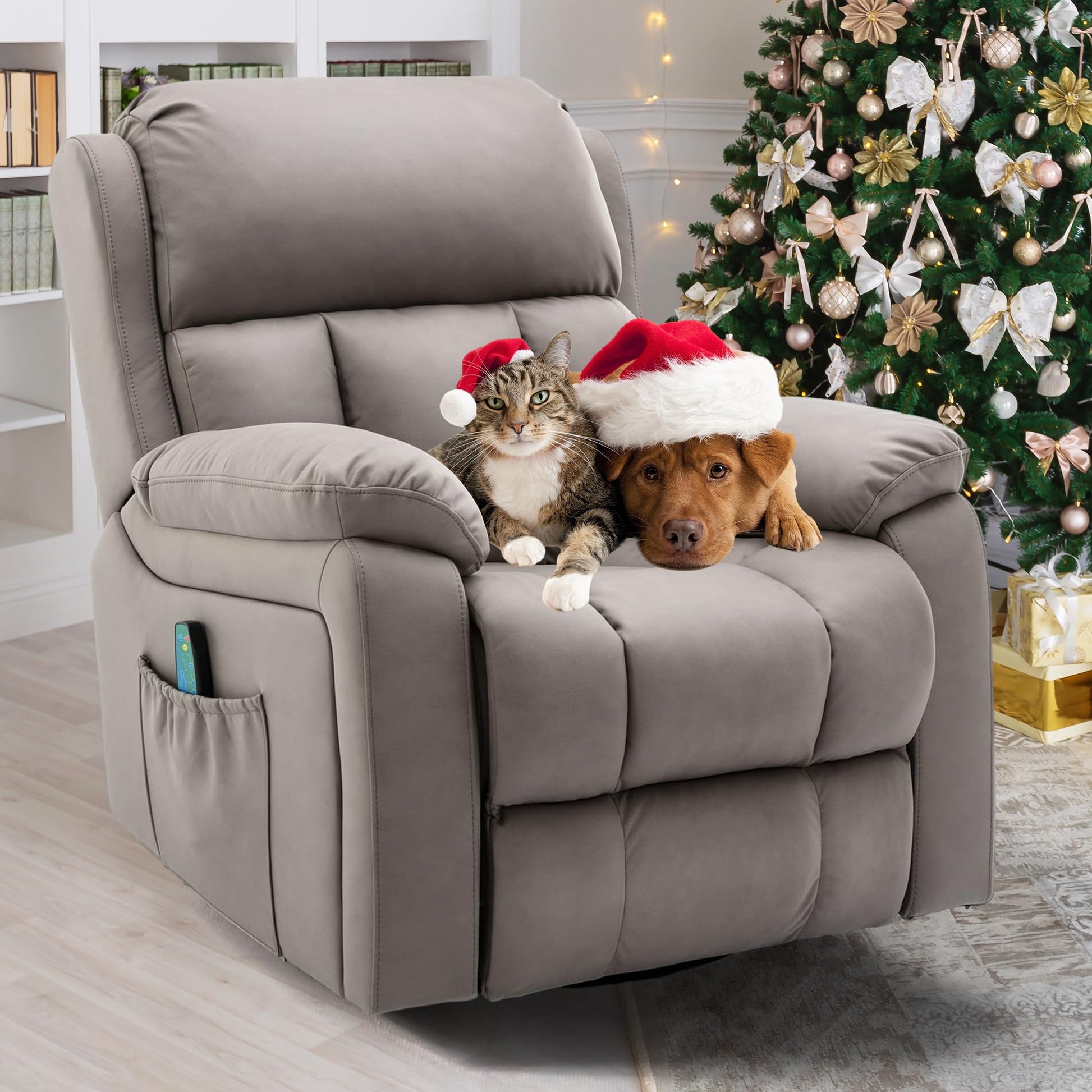 - Special Features: Massage, Heating, 360° Swivel, Rocking, Side Pocket, Microfiber Tech Fabric