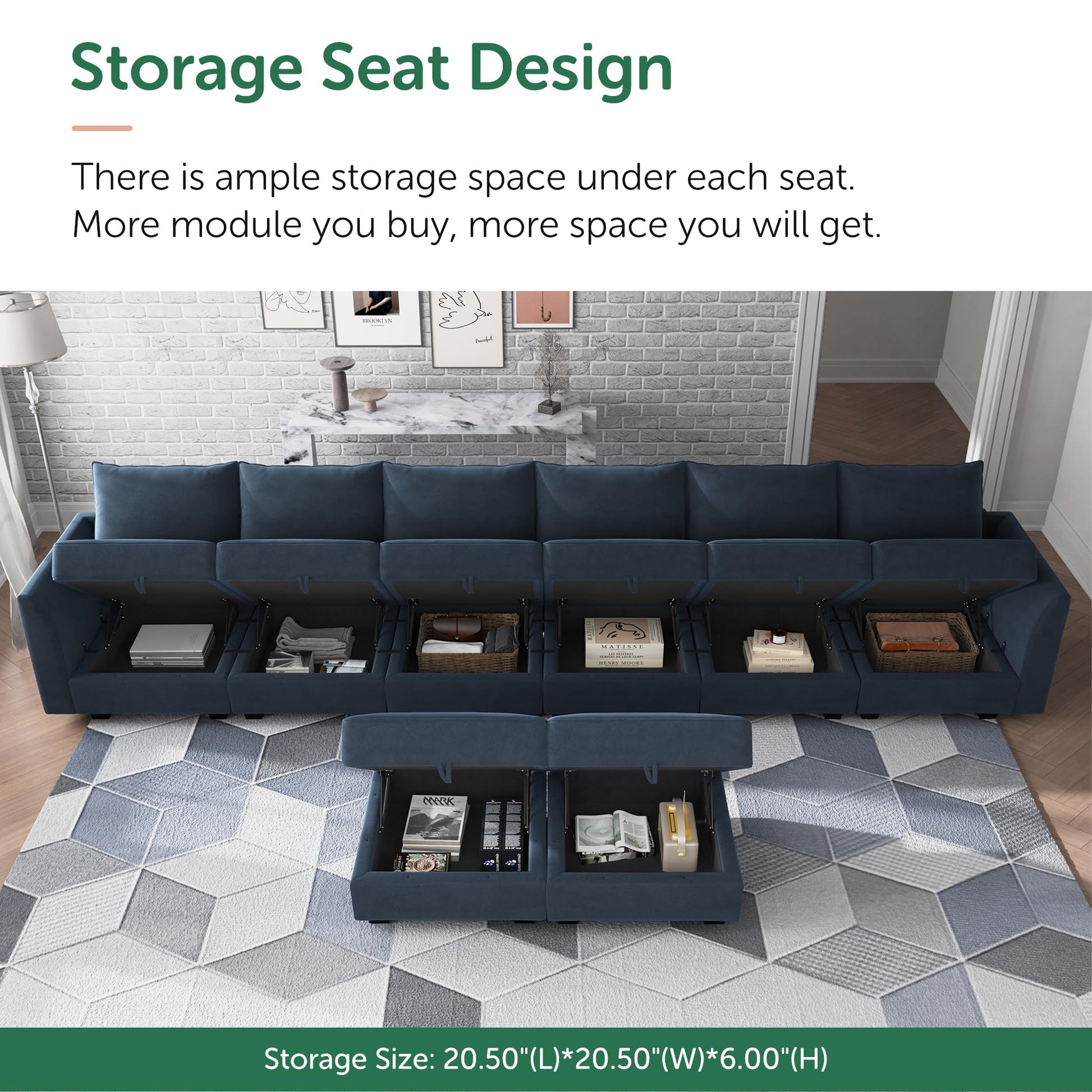- Storage Seat: There is a hidden storage space under each seat of U shaped sectional couch to keep blankets, pillows, games, and even kids toys out of sight but still within reach. Adds a lot of flexibility for different space requirements