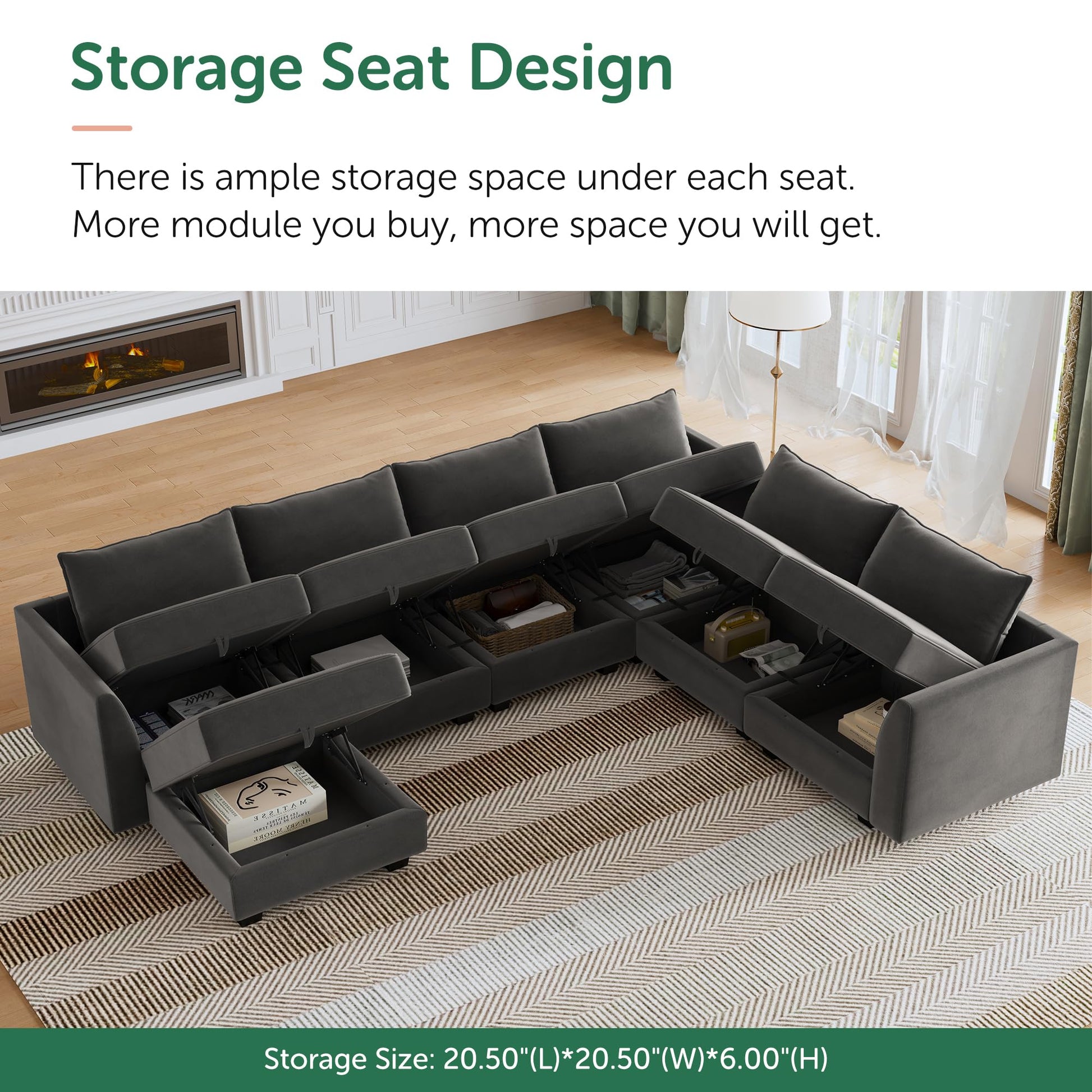 Sectional Sofa Velvet U Shaped Couch with Storage Oversized Modular Sectional Sofa