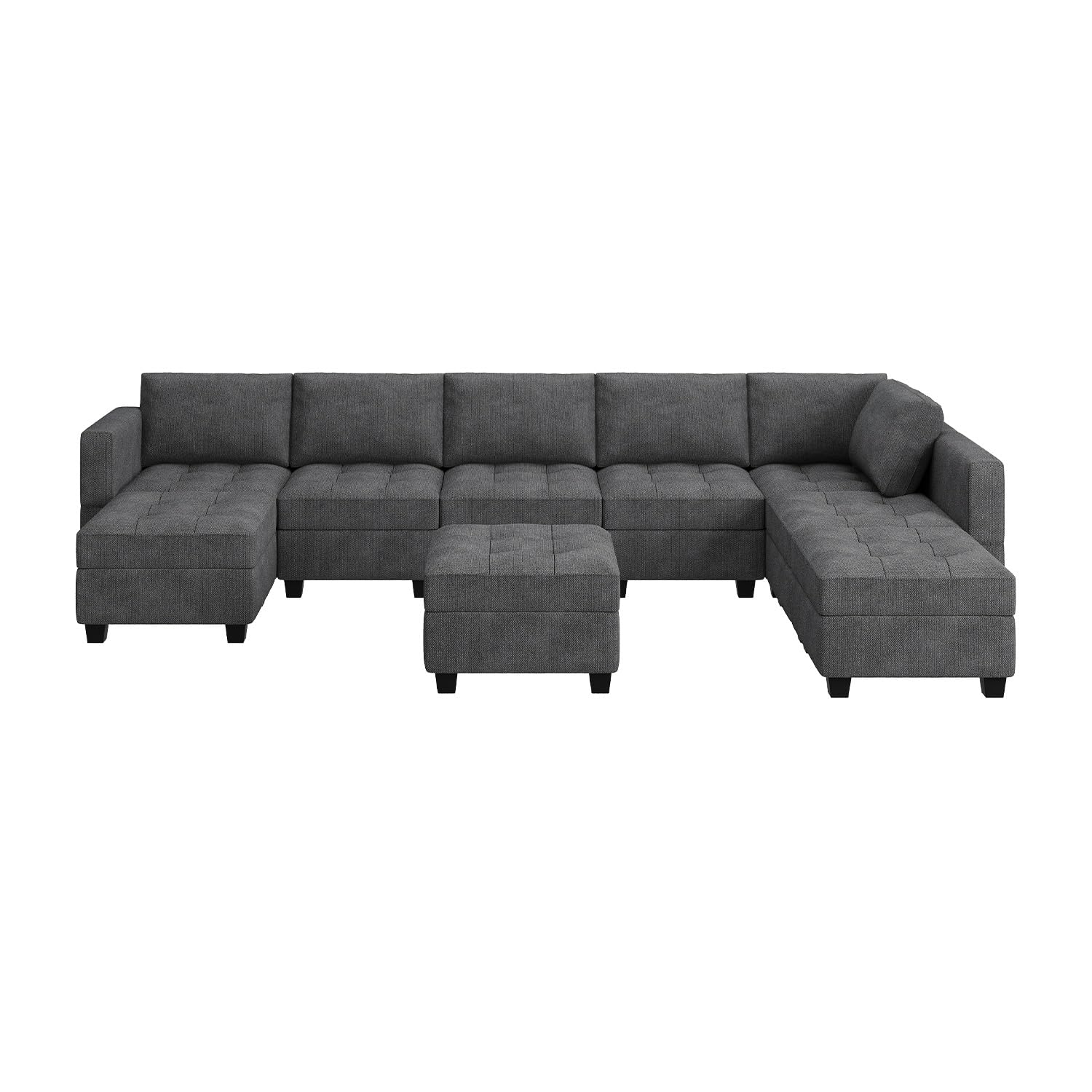 HONBAY U Shaped Modular Sectional Sofa with Storage Ottoman Sectional Couches for Living Room Dark Grey