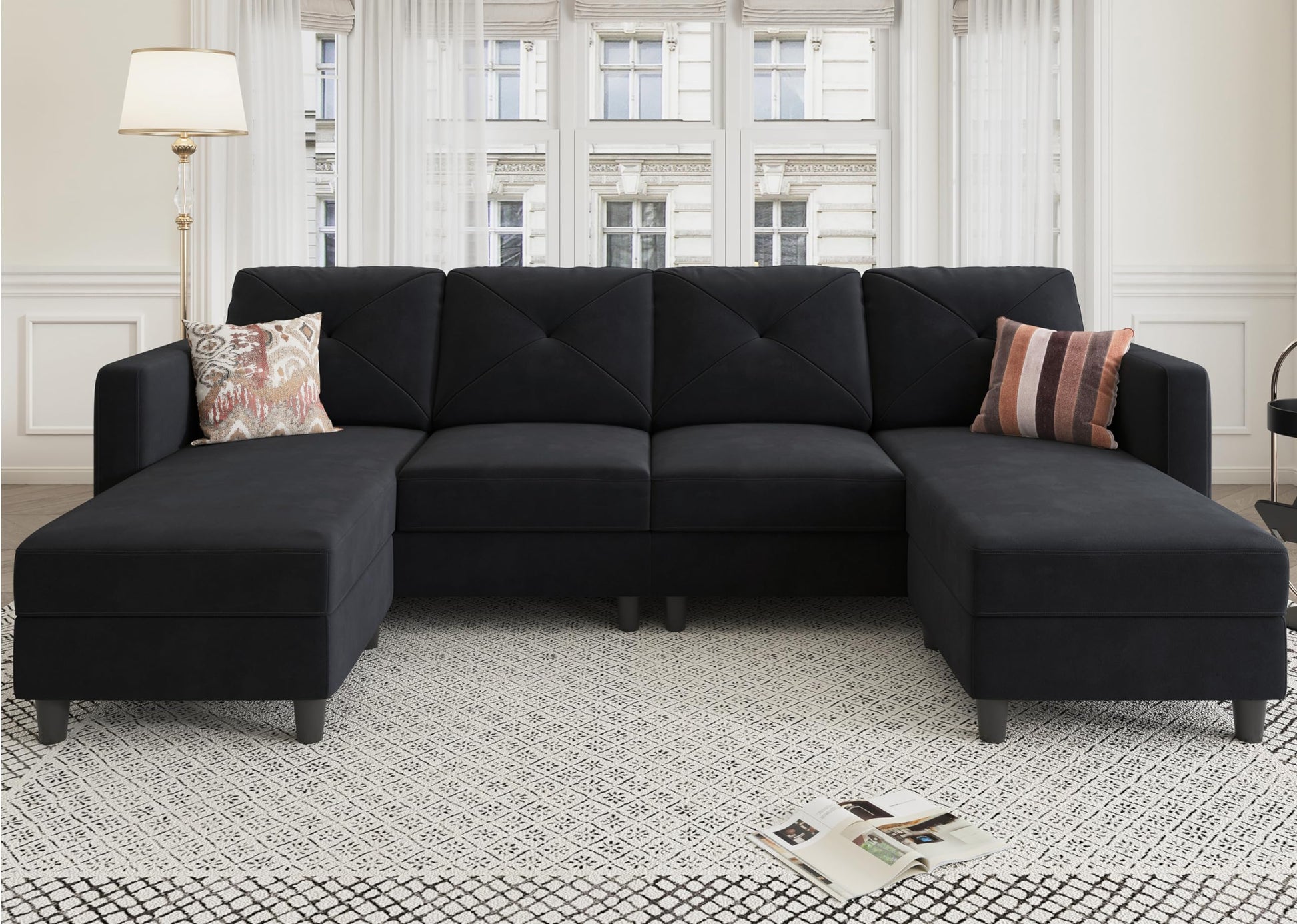 - Comfortable U-shaped couch: Deep chaises and 7.1 in thick cushions for plush comfort