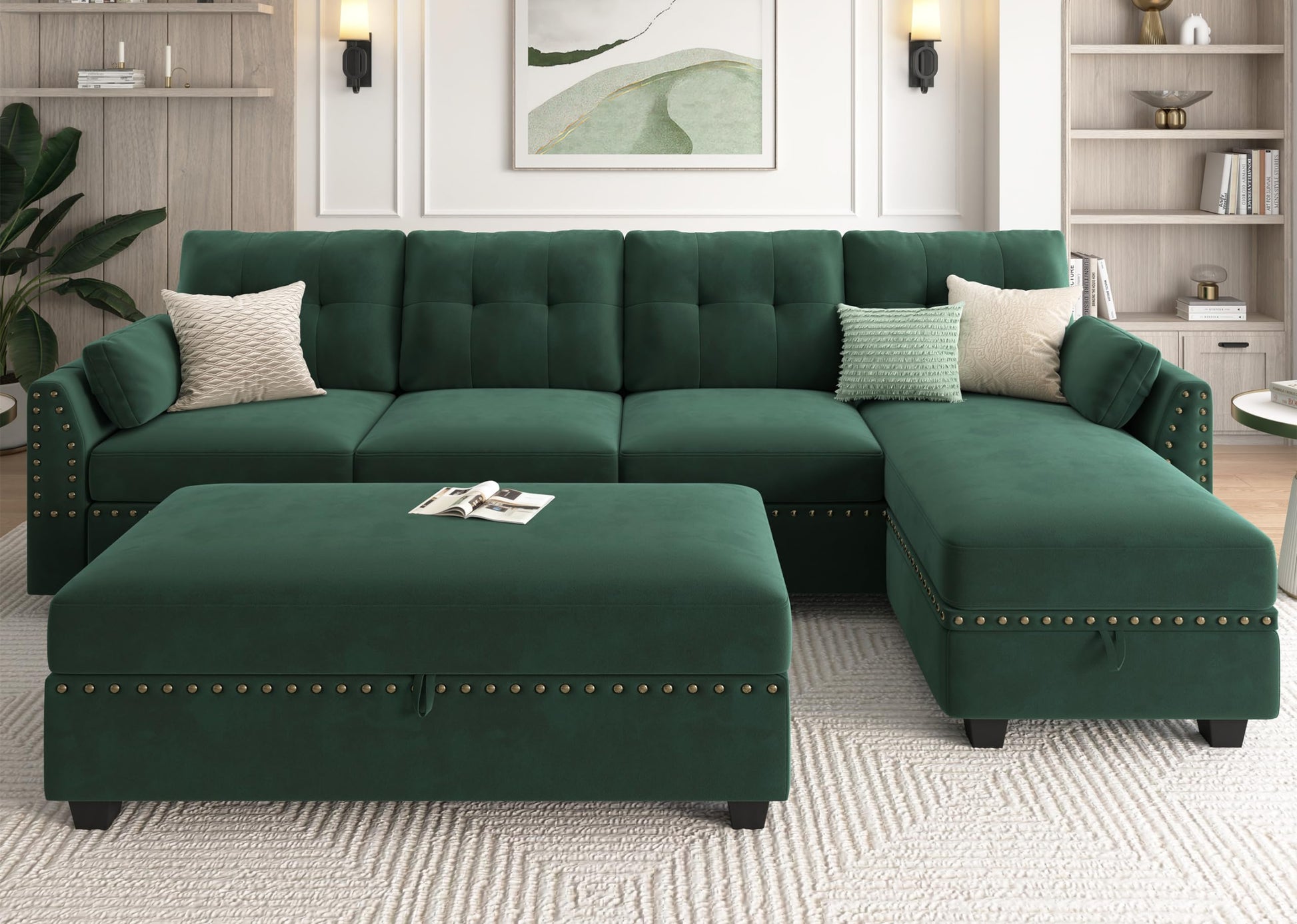 - Large Storage Space: The sectional couch set has 2 storage ottomans. Both ottomans have hidden storage space. They can meet your daily needs and make your living room look neat and tidy