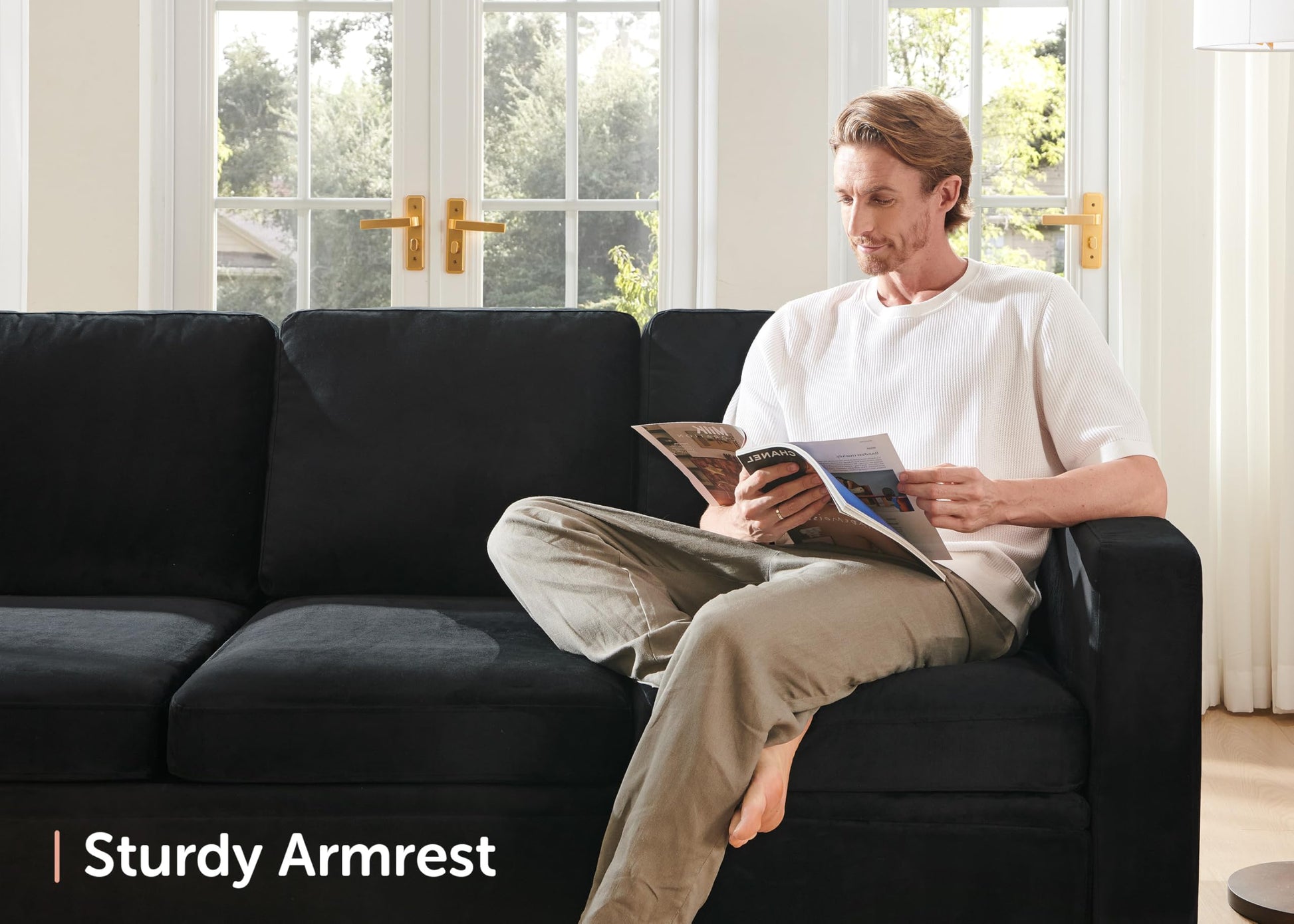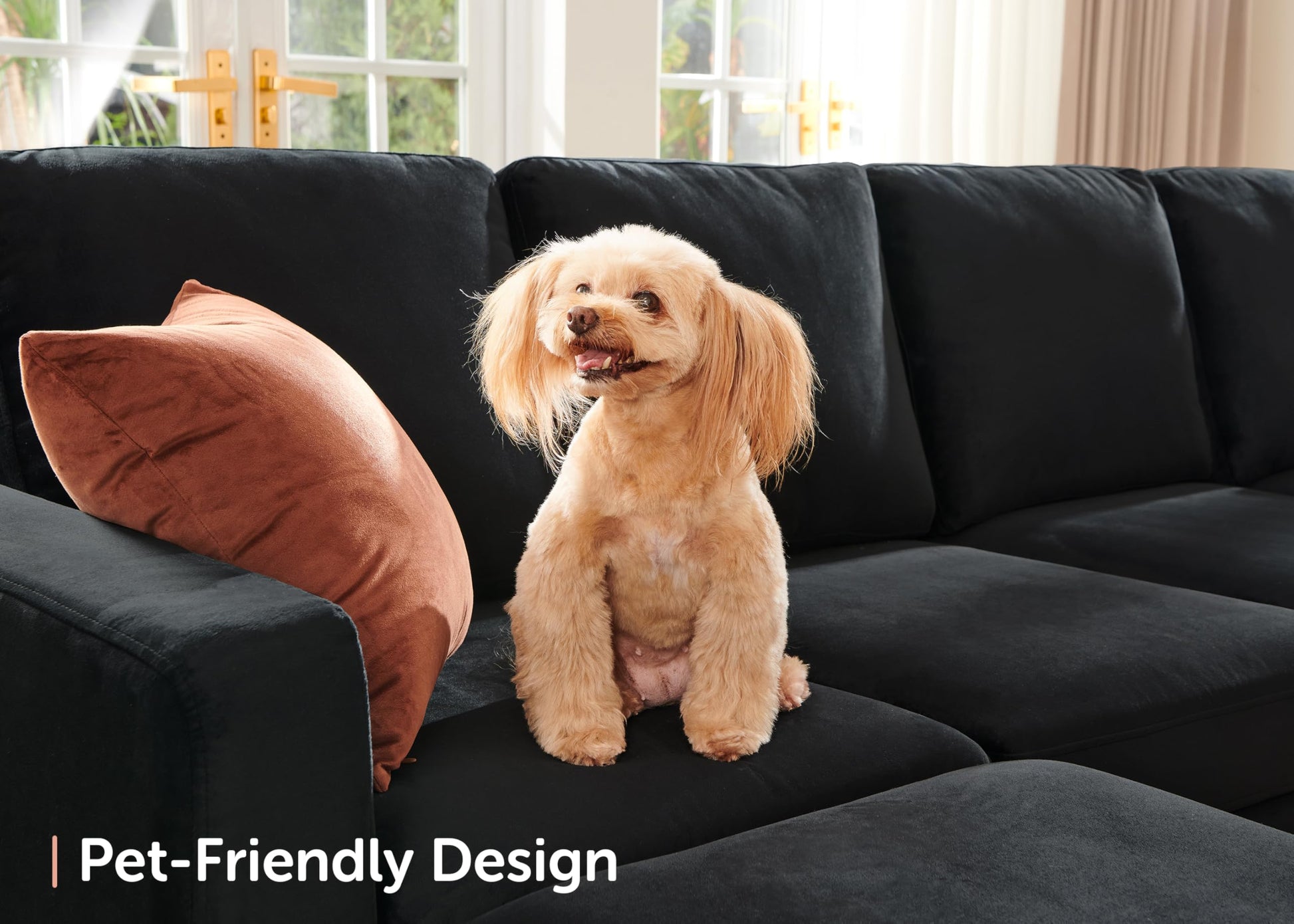 - Upholstered in pet-friendly velvet fabric, this sofa not only looks chic but also stands up to wear and tear. The soft-to-the-touch material resists stains, scratches, and peeling, ensuring your sofa remains looking its best for years to come