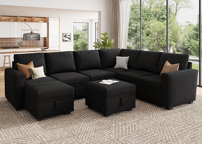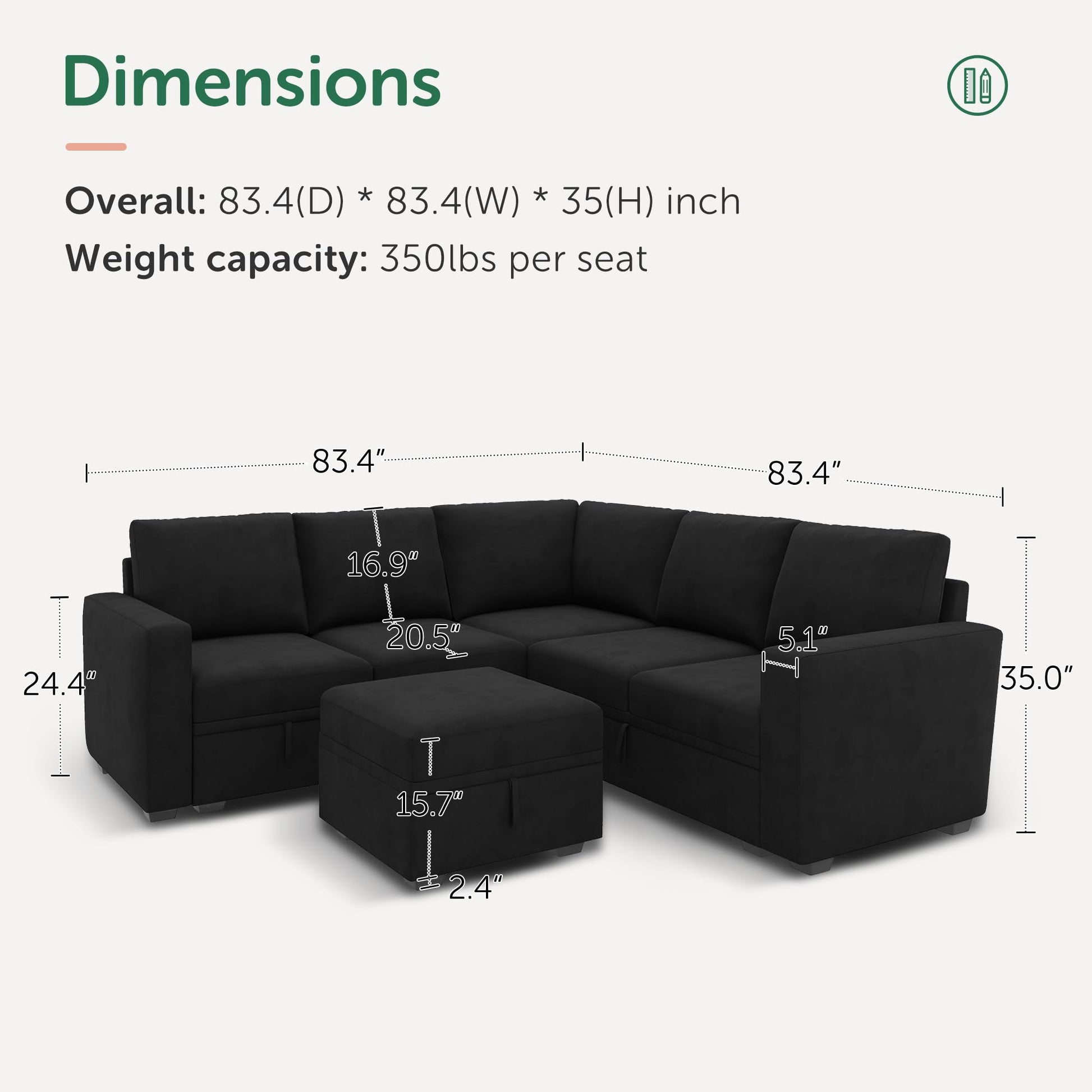 - With generous hidden storage compartments integrated into the single seat, ottoman, and loveseat modules, this sectional sofa provides plenty of room to store blankets, pillows, and other household items, keeping your living space tidy and organized