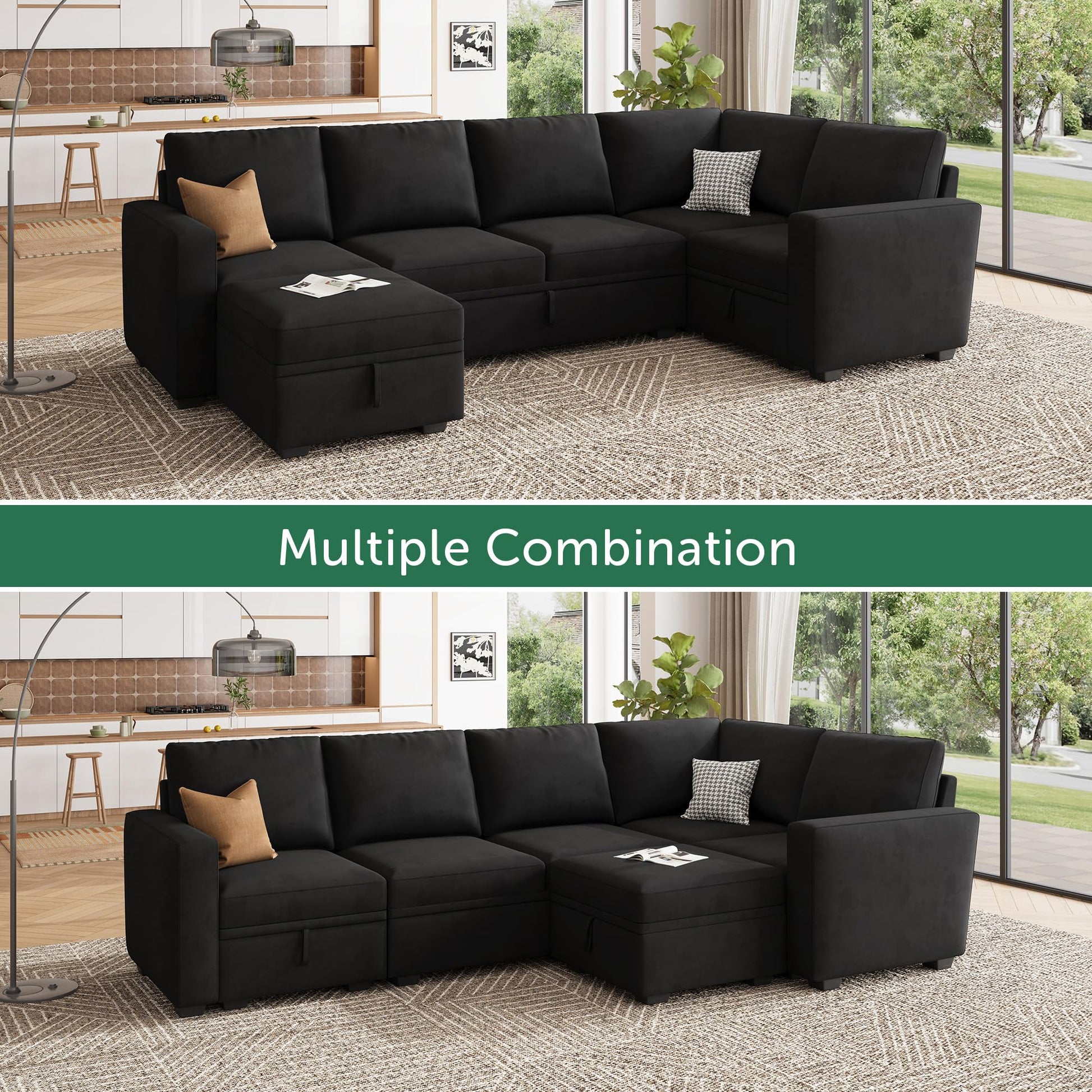 Velvet U-Shaped Sectional Couch with Storage,Modular Sectional Sofa