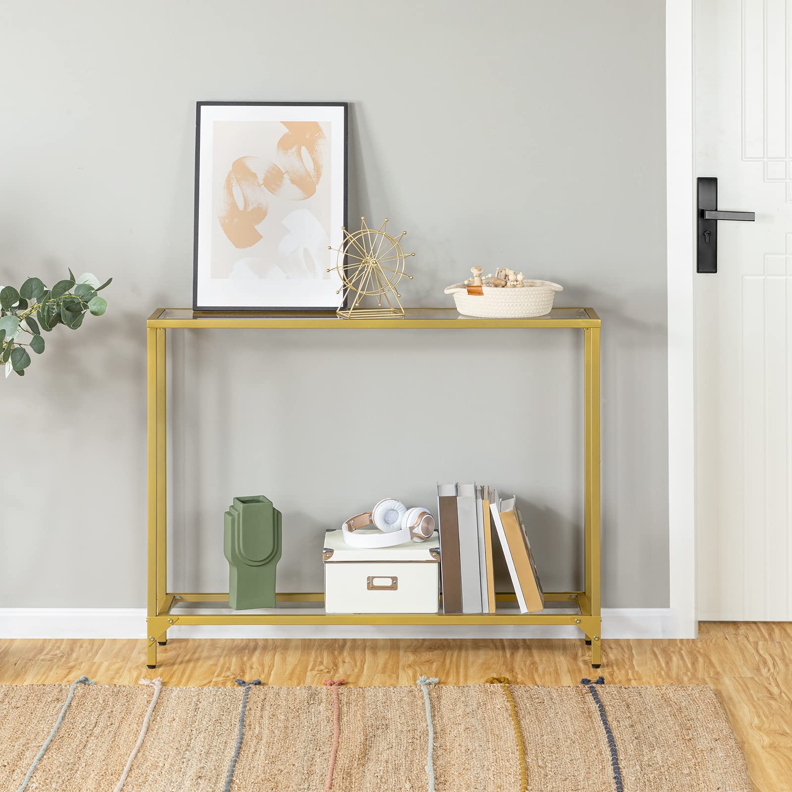 39.4" Gold Console Table, Tempered Glass Sofa Table, Modern Entryway Table