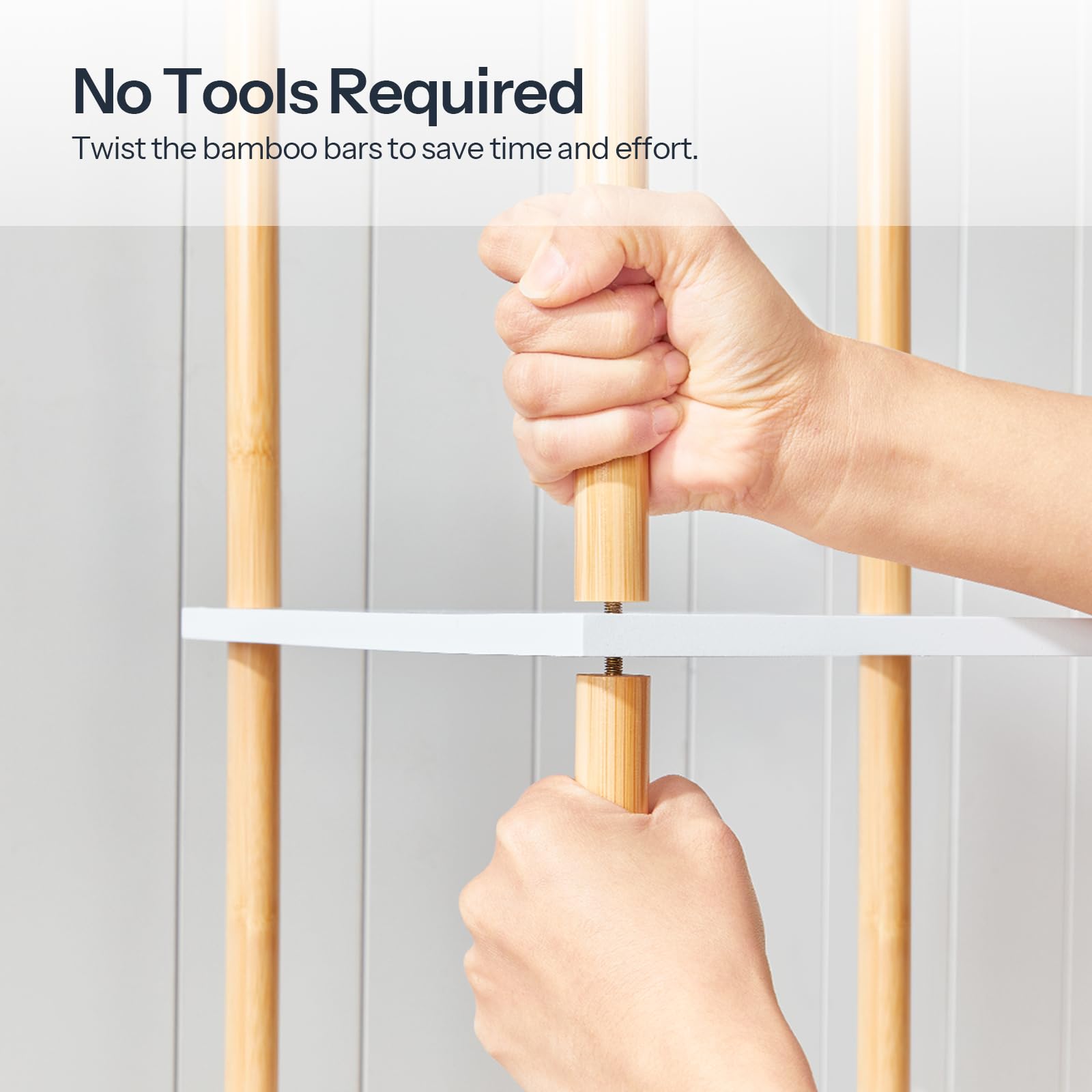 - No Tool Required: Worried about the difficulty in assembly? Choose this tall corner shelf and you will have a joyful experience. You just need to twist in the components with your hands and finish everything without additional tools, simple and relaxing.