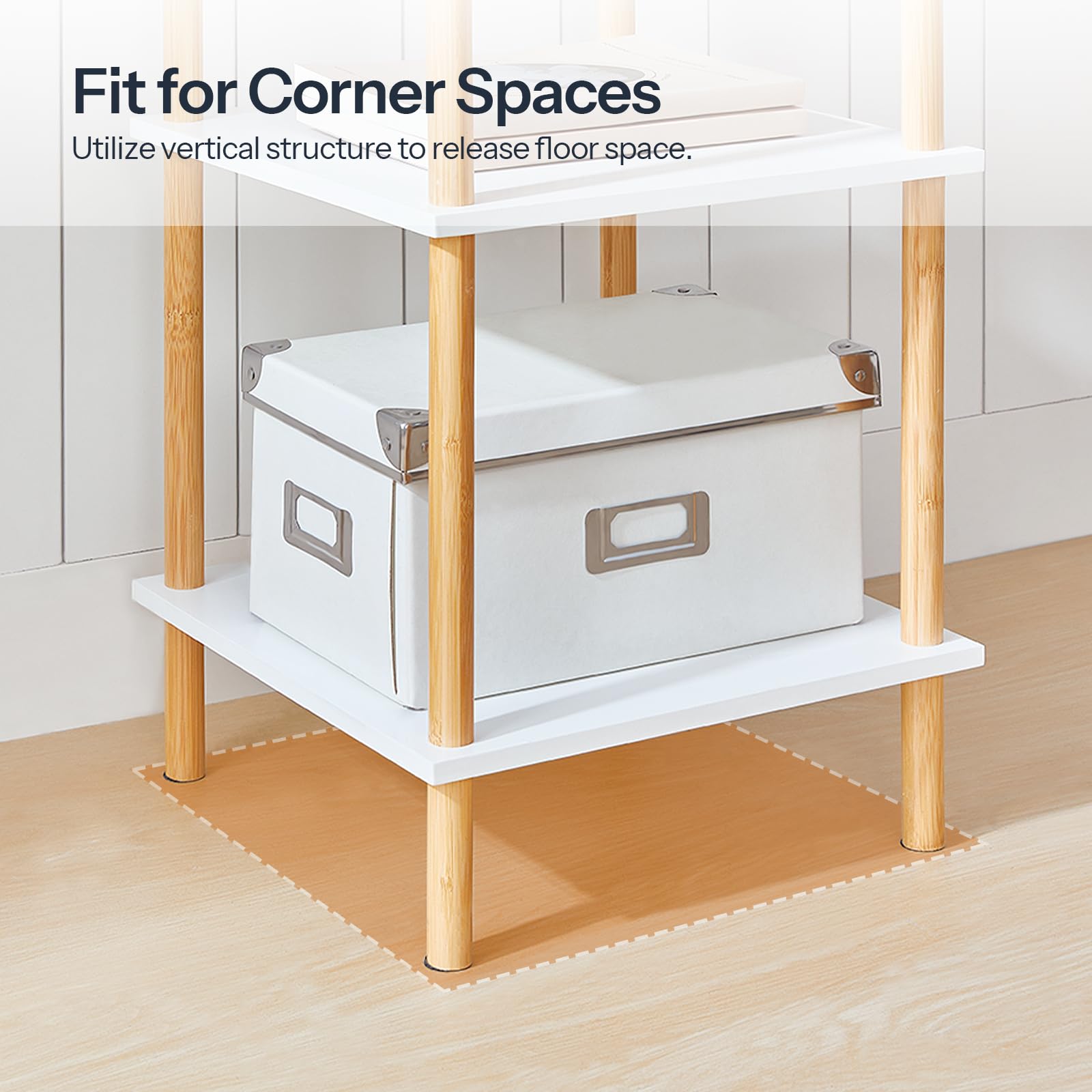 HOOBRO 5-Tier Corner Shelf, Bamboo Corner Square Rack Display Shelf, Tall Storage Rack Plant Stand, Corner Bookcase for Small Spaces, Living Room, Home Office, Kitchen, White and Natural WT21CJ01