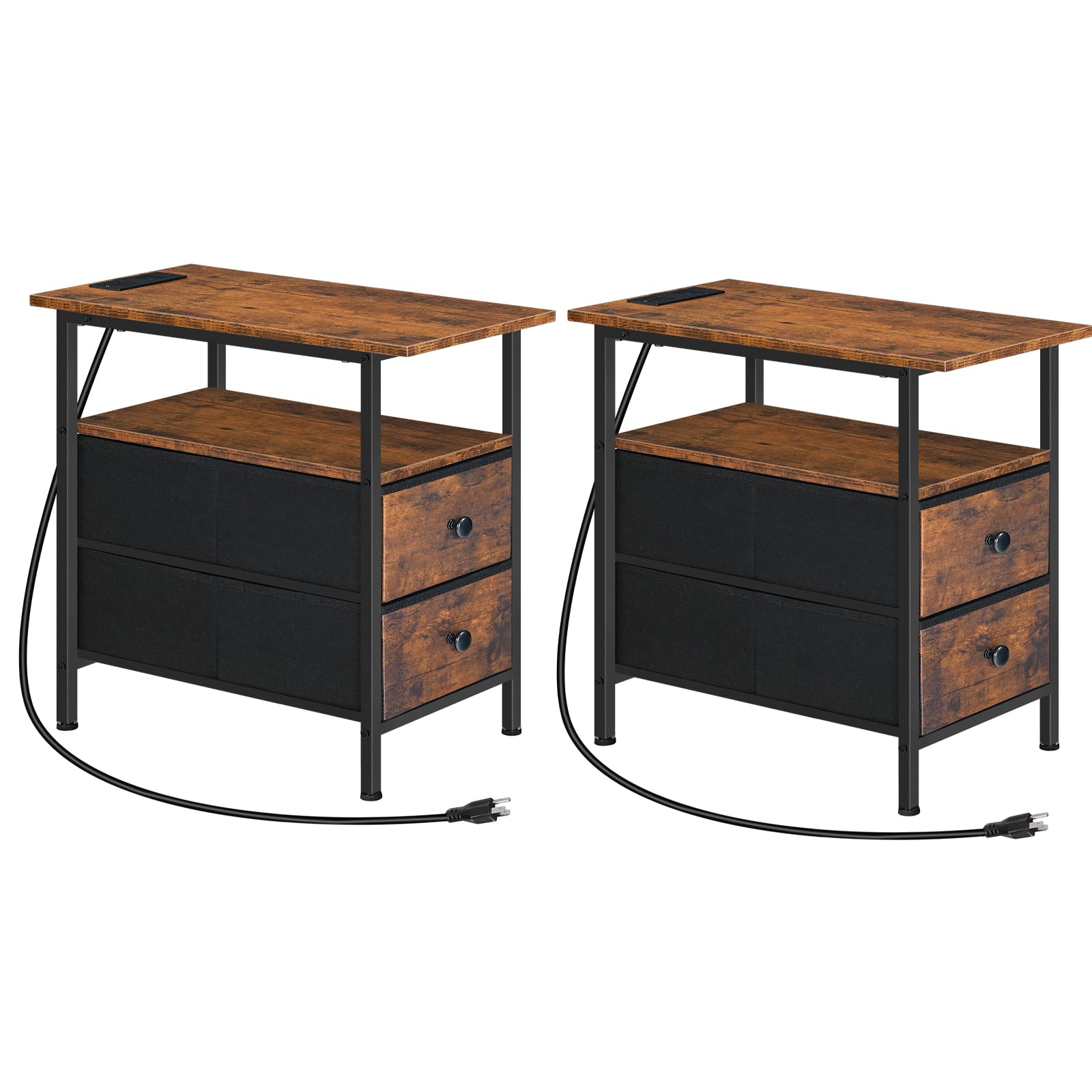 End Table with Charging Station, Set of 2 Narrow Side Tables, Nightstand