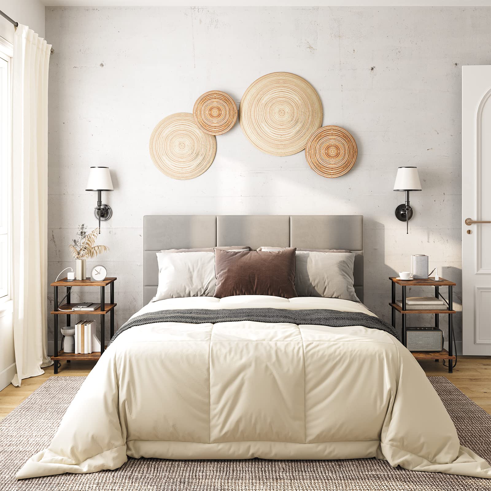 - Solid and Stable: This bedside table with charging function is strongly supported by the matte black metal legs and frame. With 4 adjustable feet, it stands leveled even on uneven ground without scratches on the floor
