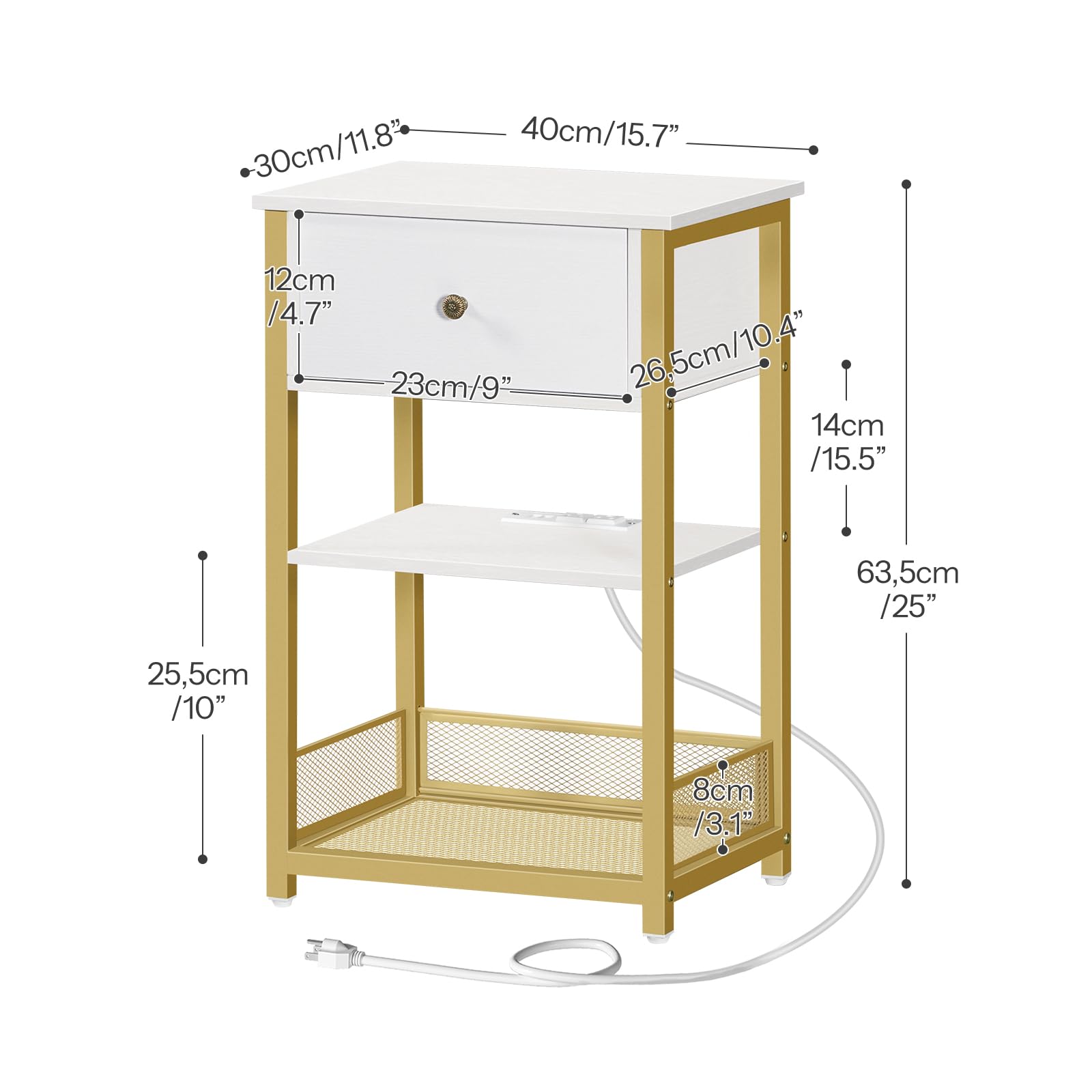 - Simple Fashion: It is a beautiful side table in elegant white and light gold with nobleness and delicacy. Clean structure combining cool and warm tones makes this bedside table more attractive and harmonious in any rooms like living room and bedroom