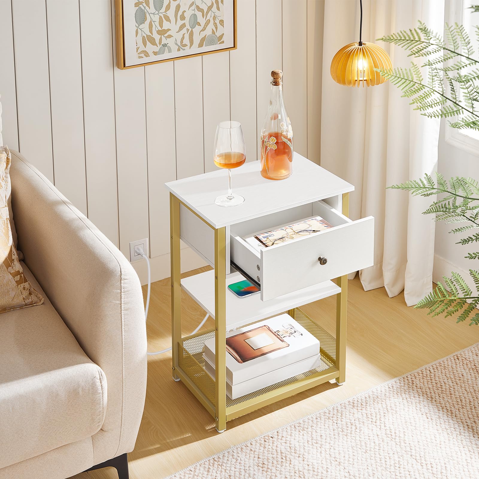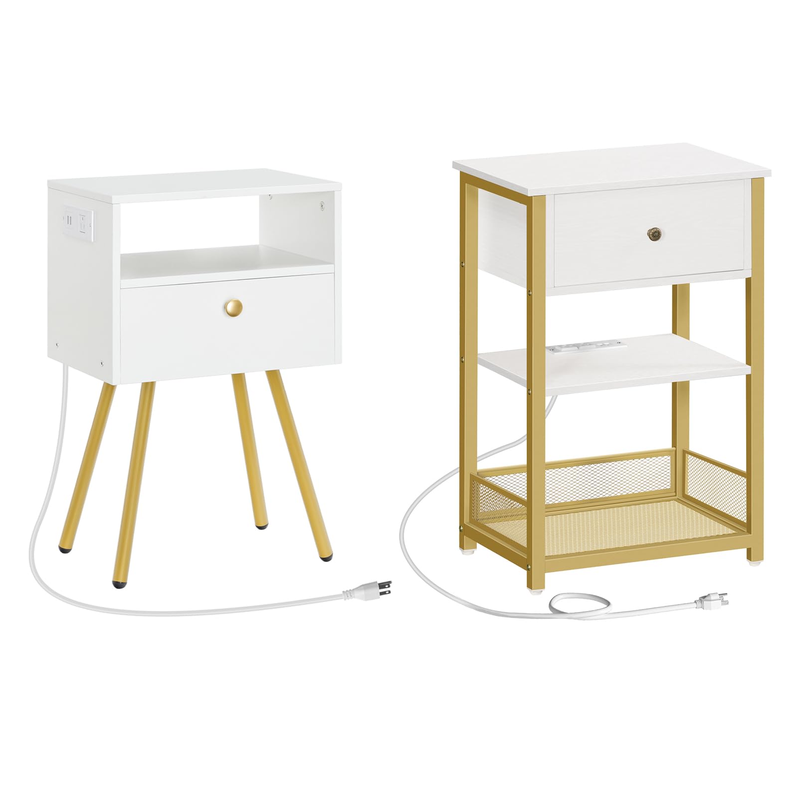 Nightstand with Charging Station and Side Table Bundle, End Table