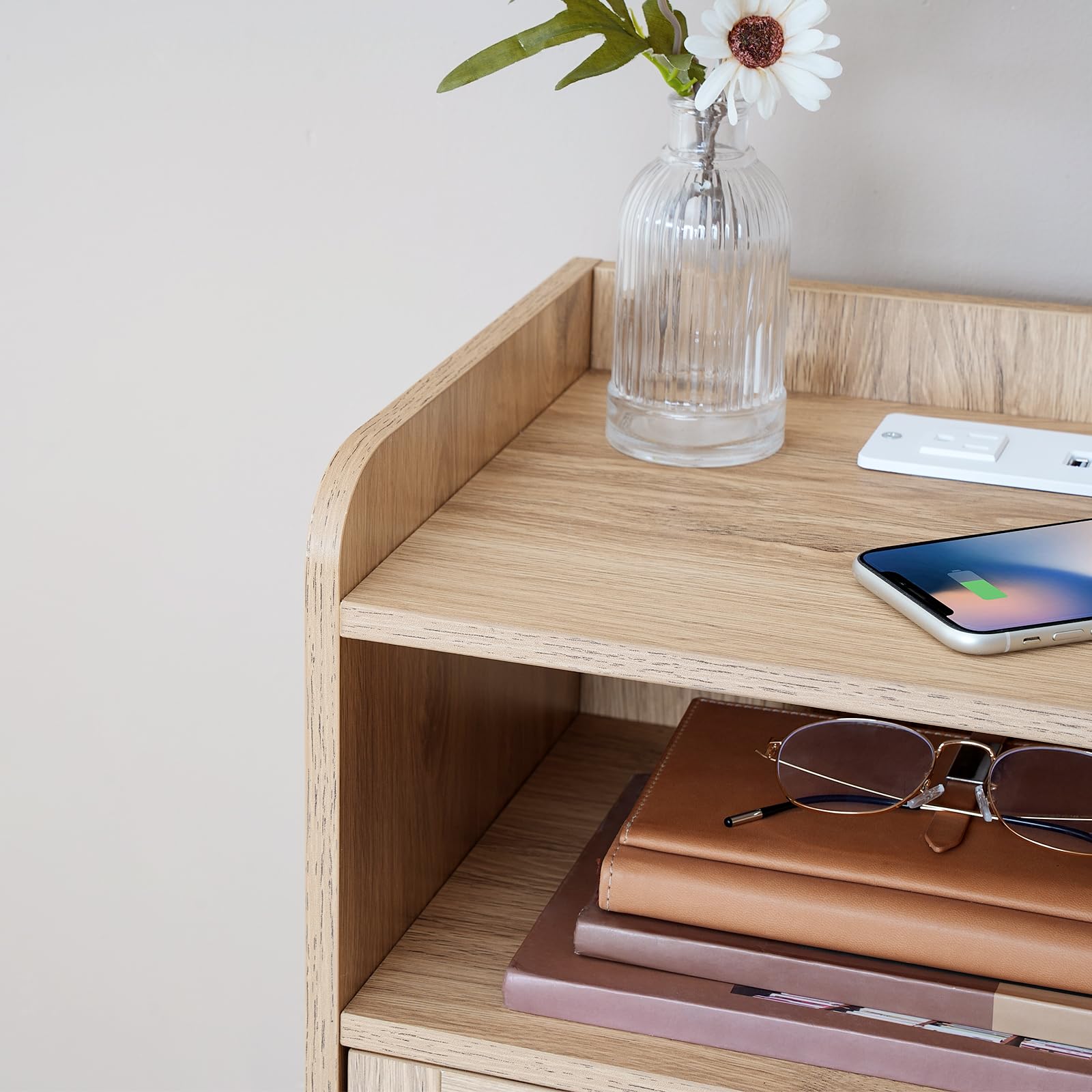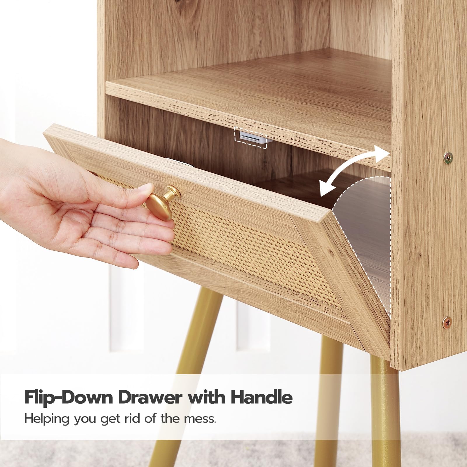 - Modern and Minimalist: The bedside table adopts natural oak texture with smooth and simple lines plus the rattan weaving element on the drawer, clean and elegant. Put it in the living room and bedroom to make the room brighter and more rustic